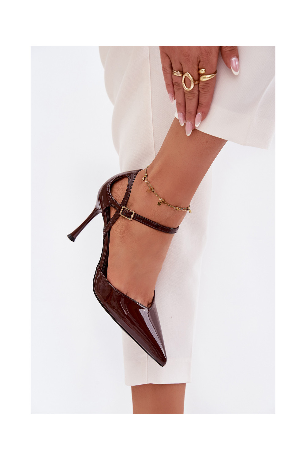 su lako efektu aukštakulniai bateliai su dirželiais Czekoladowe Tarilin