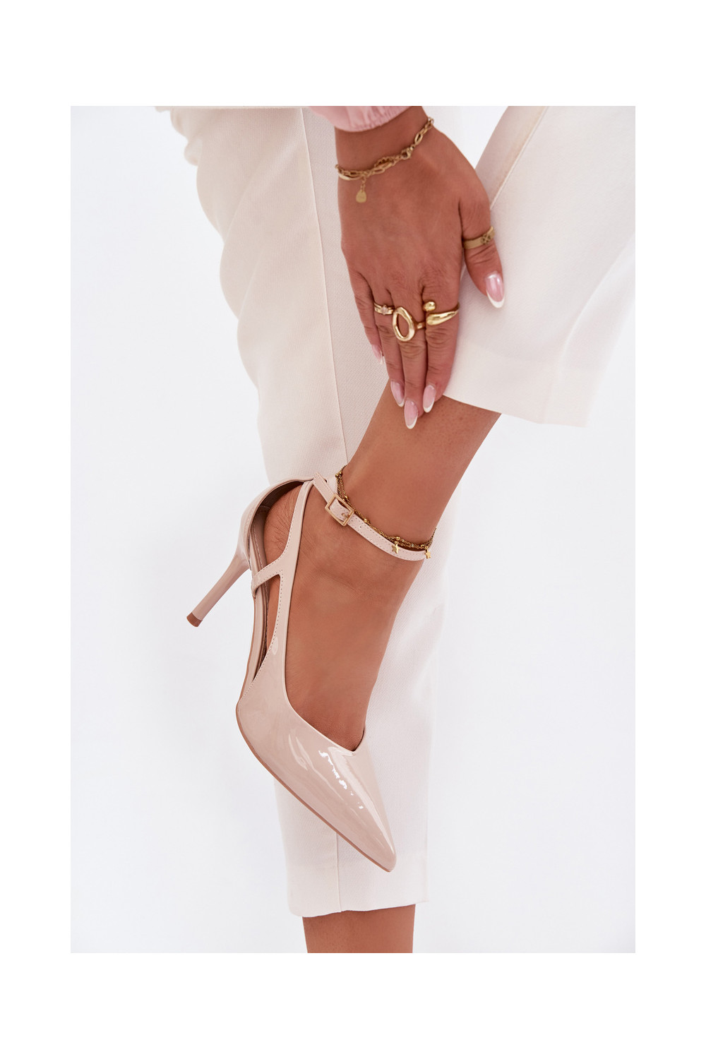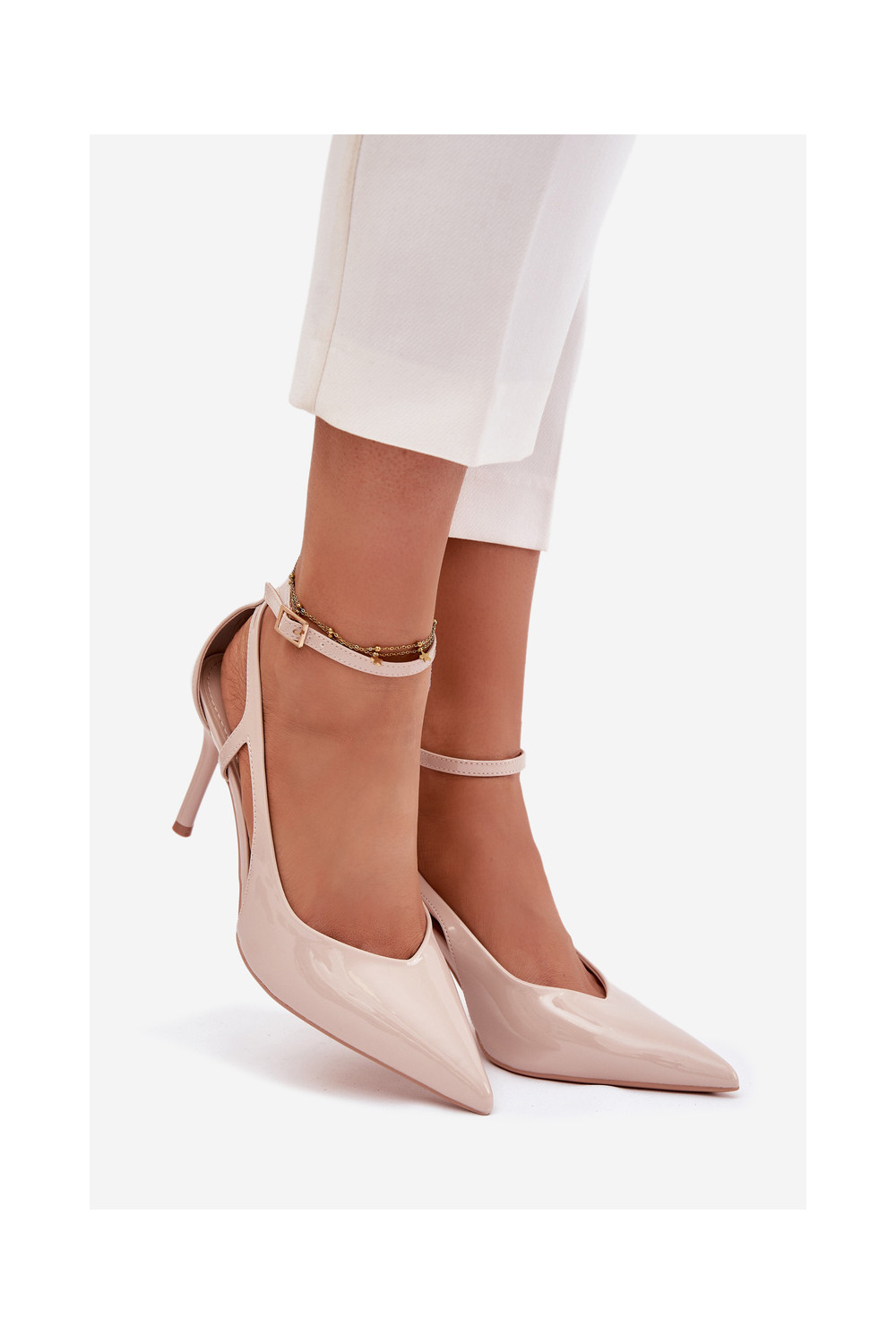 su lako efektu aukštakulniai bateliai iš eko odos smėlio spalvos Fionnel