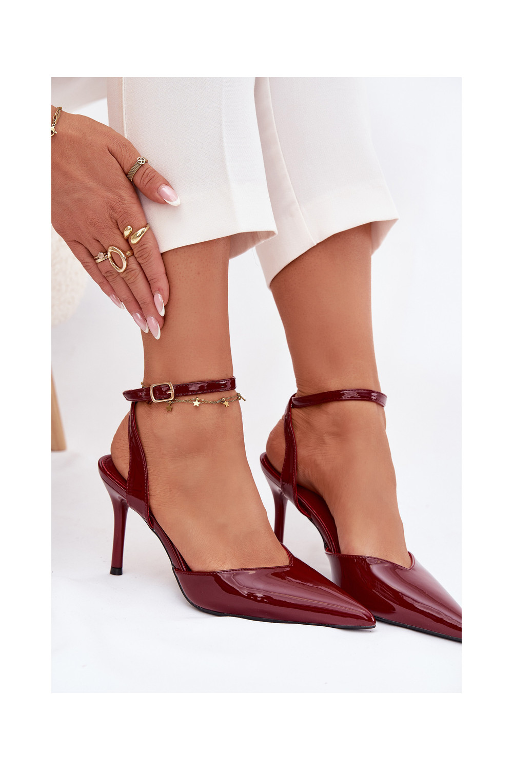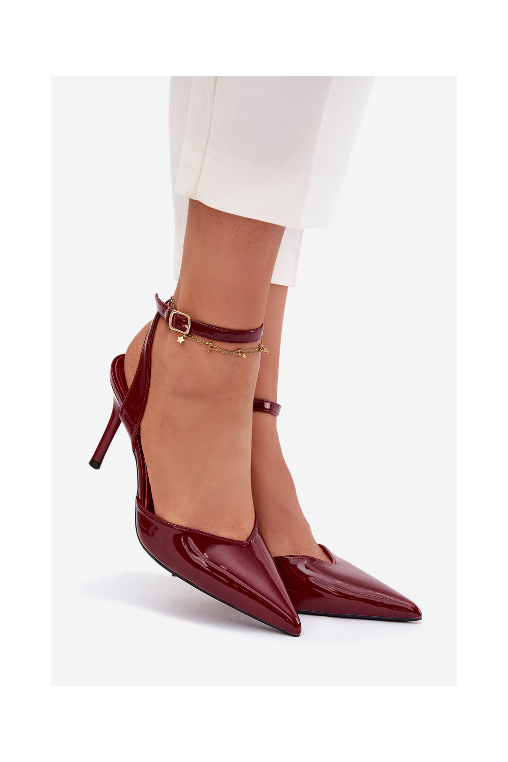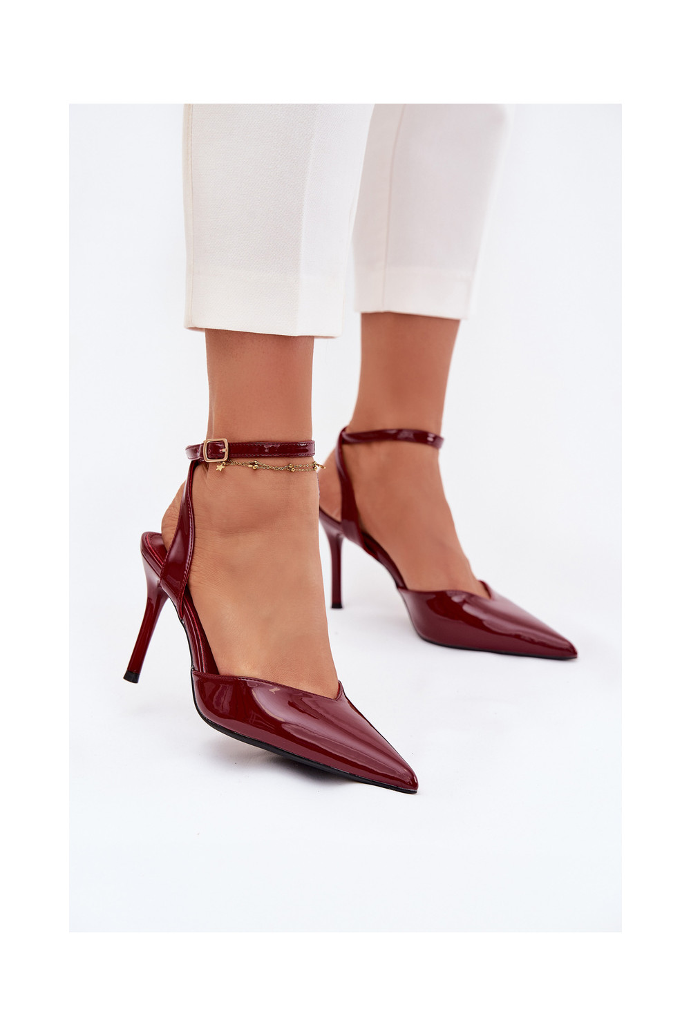 su lako efektu aukštakulniai bateliai su atviru kulnu bordo spalvos Laretta