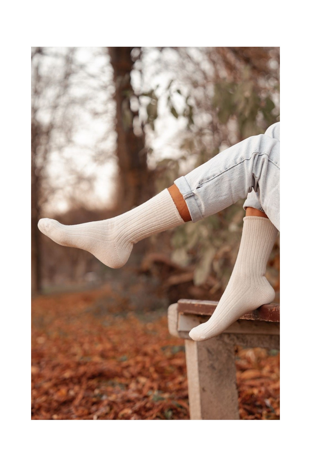 Dramblio kaulo spalvos moteriškos medvilninės kojinės