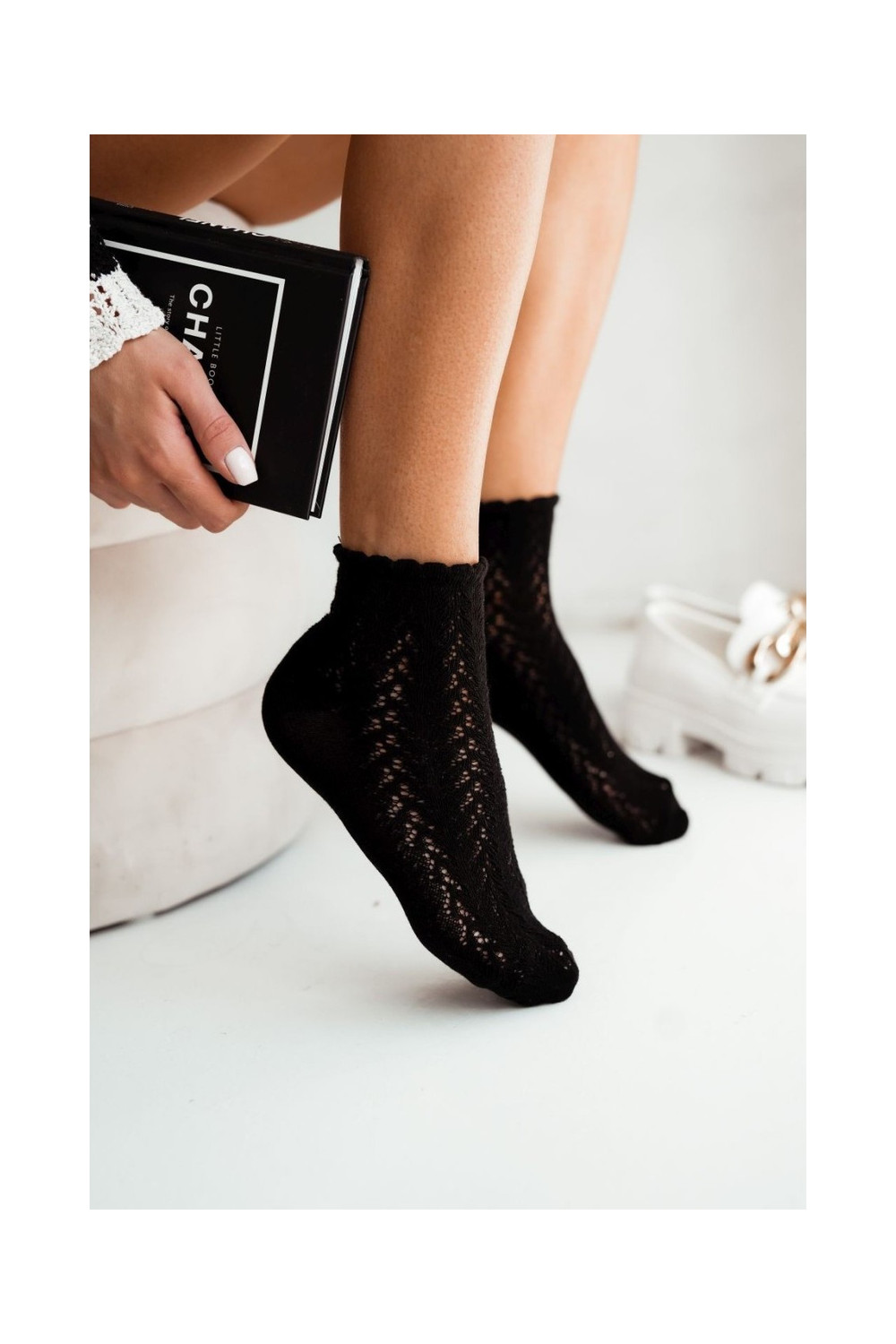 Moteriškos kojinės su ažūro elementais juodos spalvos