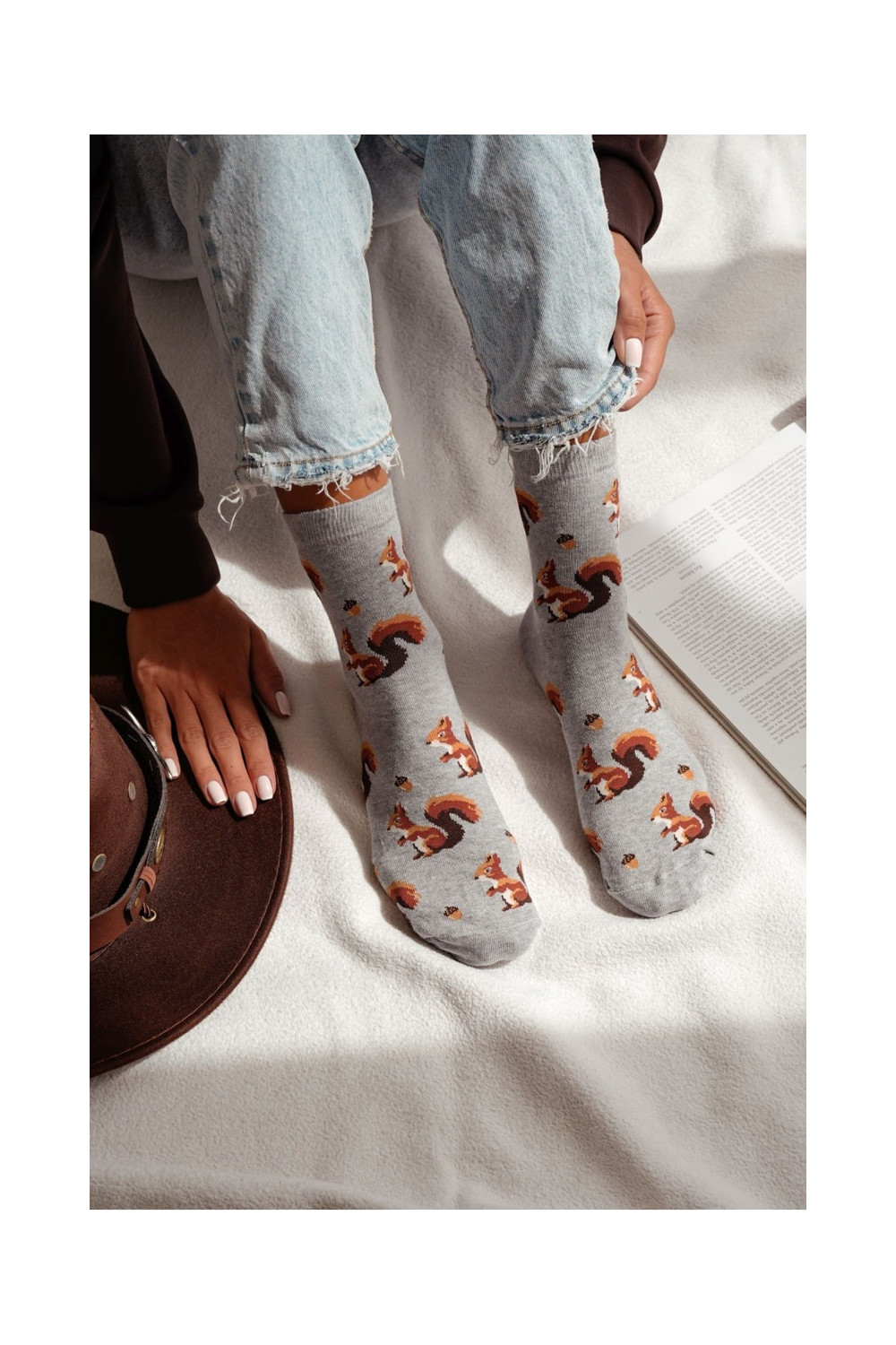 Moteriškos kojinės Voverės ir riešutai pilkos spalvos melanžas