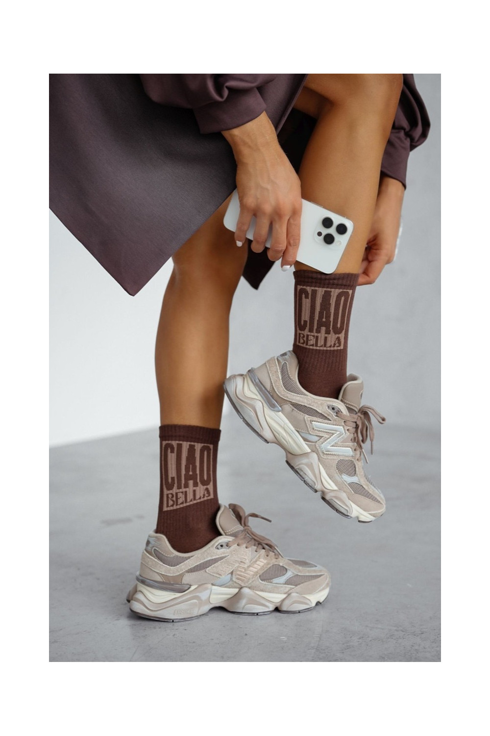 Moteriškos šokoladinės spalvos kojinės „CIAO BELLA"