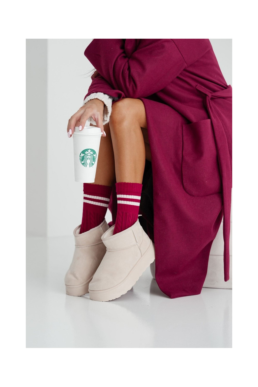 Kojinės Moteriškas INarkocz su juostelėmis bordo spalvos