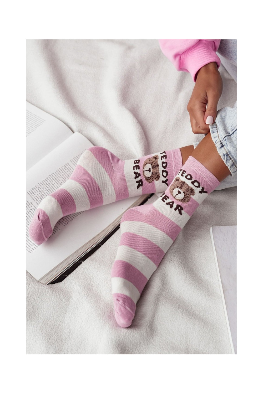 Kojinės Moteriškas su dryžiais Teddy Bear rožinės-baltos spalvos