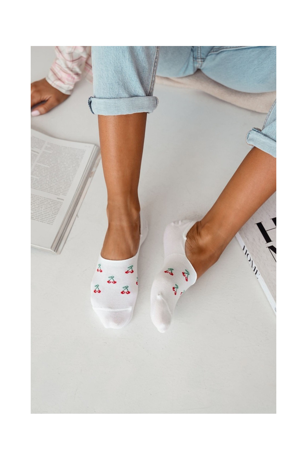 Kojinės Micro  Bawełniane Małe Wiśnie baltos spalvos