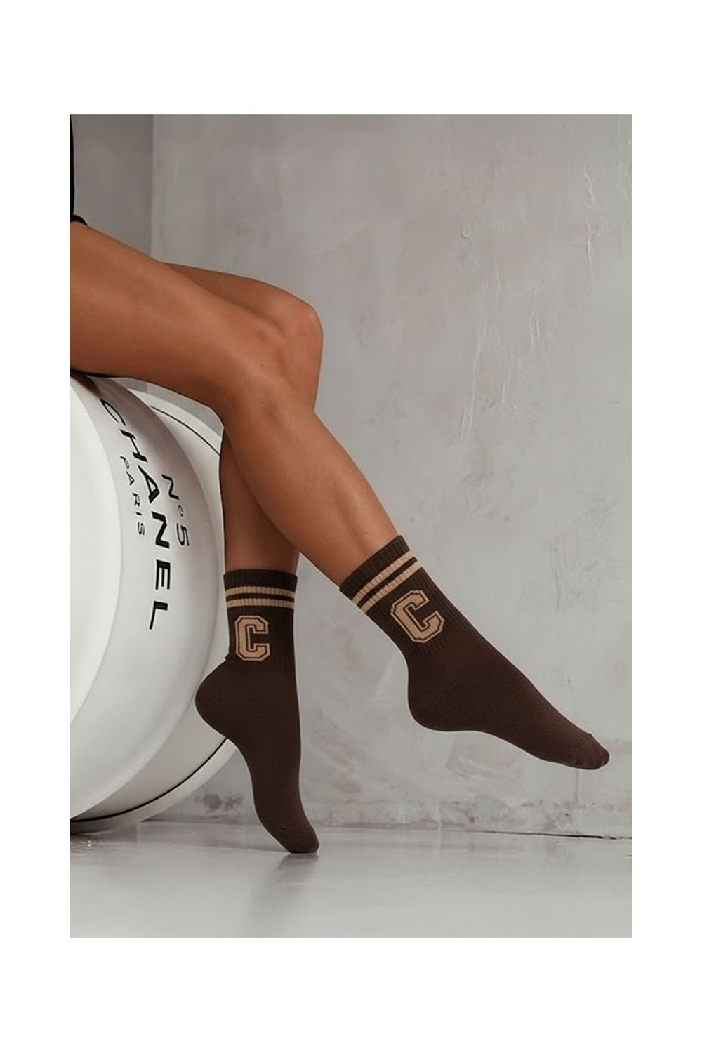 Moteriškos kojinės su juostelėmis I Literą C Czekoladowe