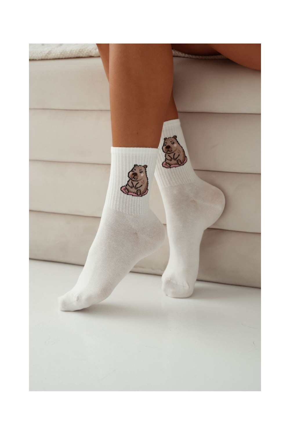 Kojinės Bawełniane Siedząca Kapibara dramblio kaulo spalvos