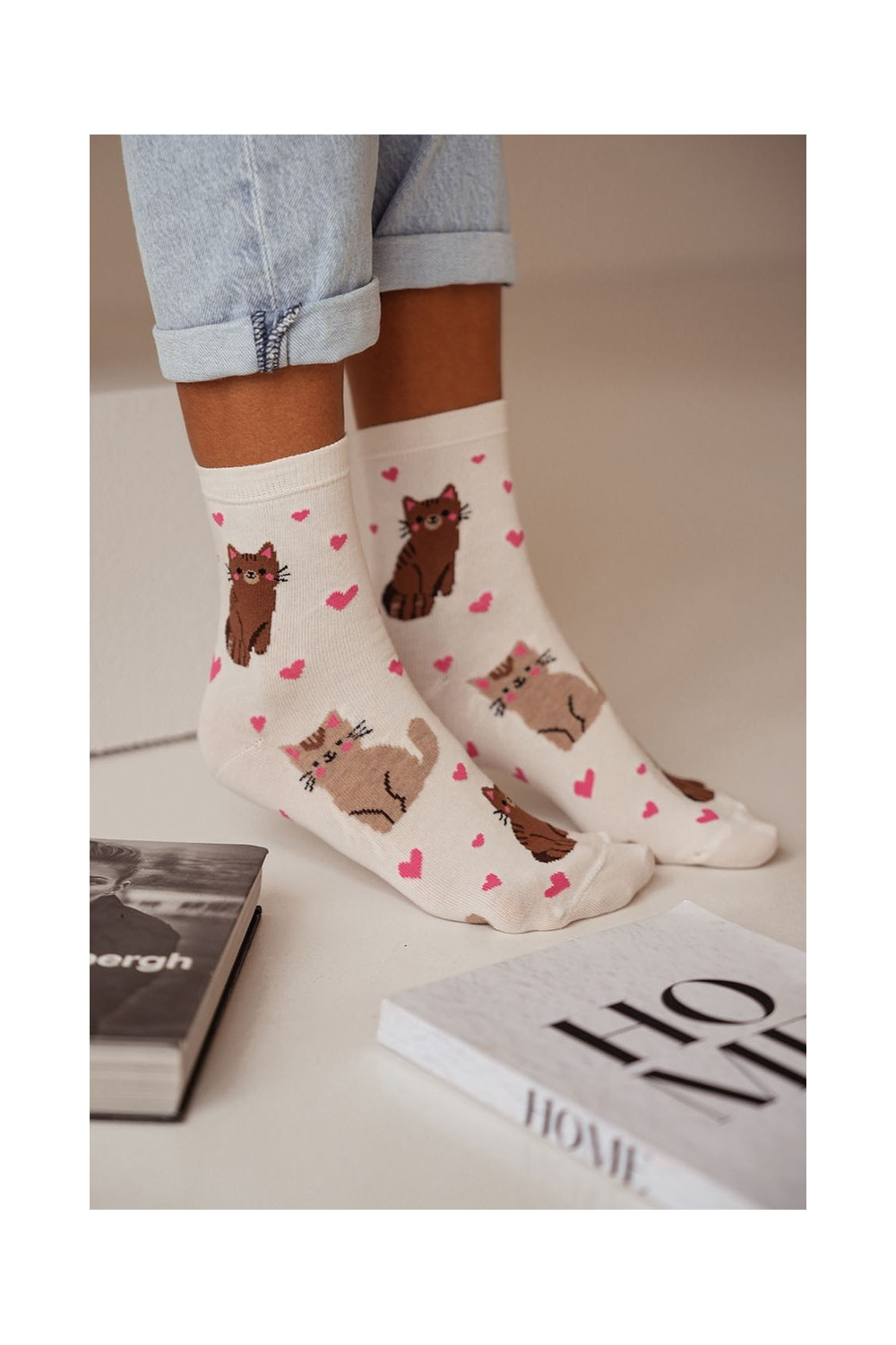 Kojinės I su širdelėmis dramblio kaulo spalvos