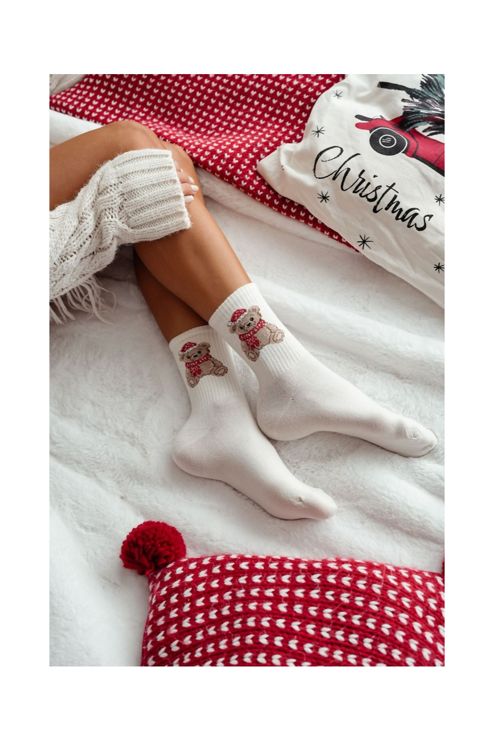 Kojinės Moteriškas Christmas Meškiukai Dangtelyje Santa Clausa dramblio kaulo spalvos