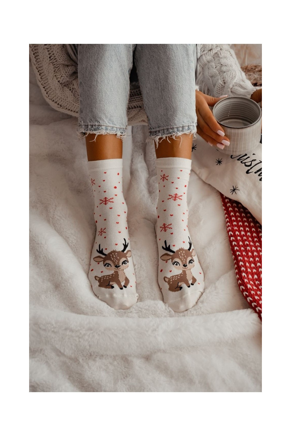 Kojinės Moteriškas Christmas Šiaurės elniai dramblio kaulo spalvos