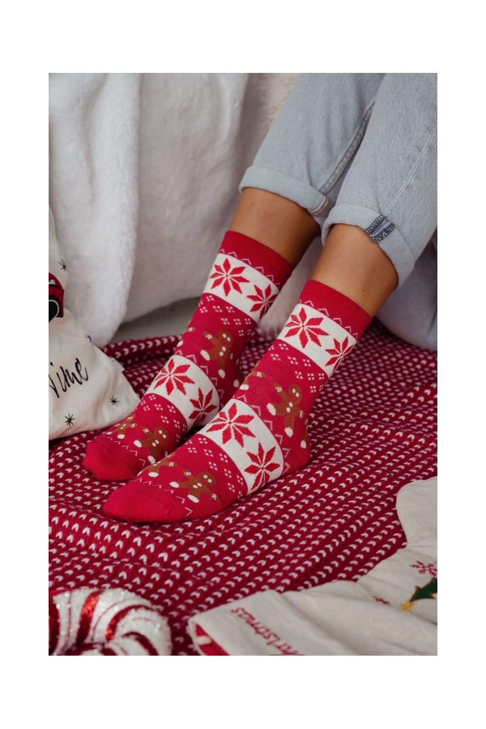 Kojinės Moteriškas Christmas Pierniki raudonos spalvos