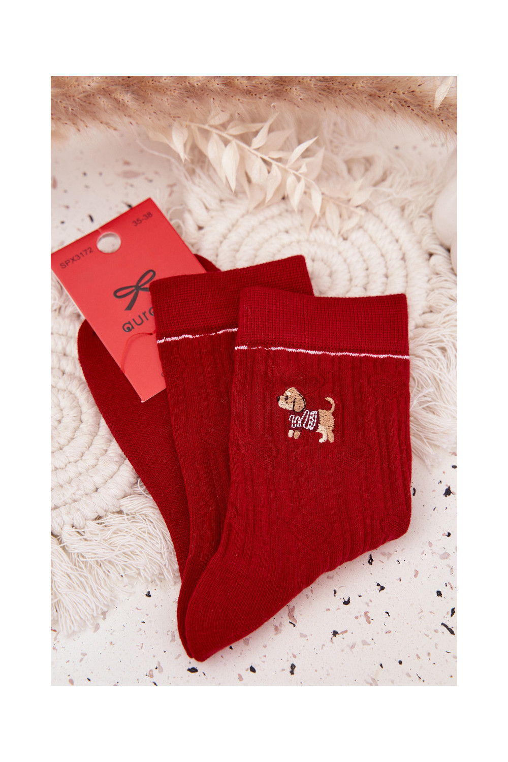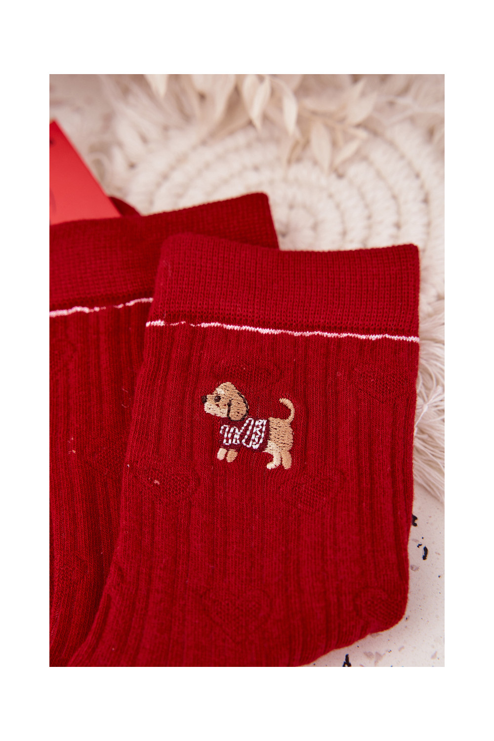 Moteriškos kalėdinės kojinės su širdelėmis I Tai turižas šuo raudonos spalvos