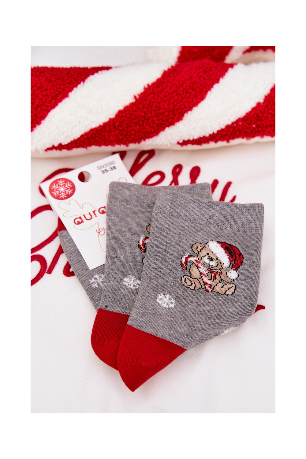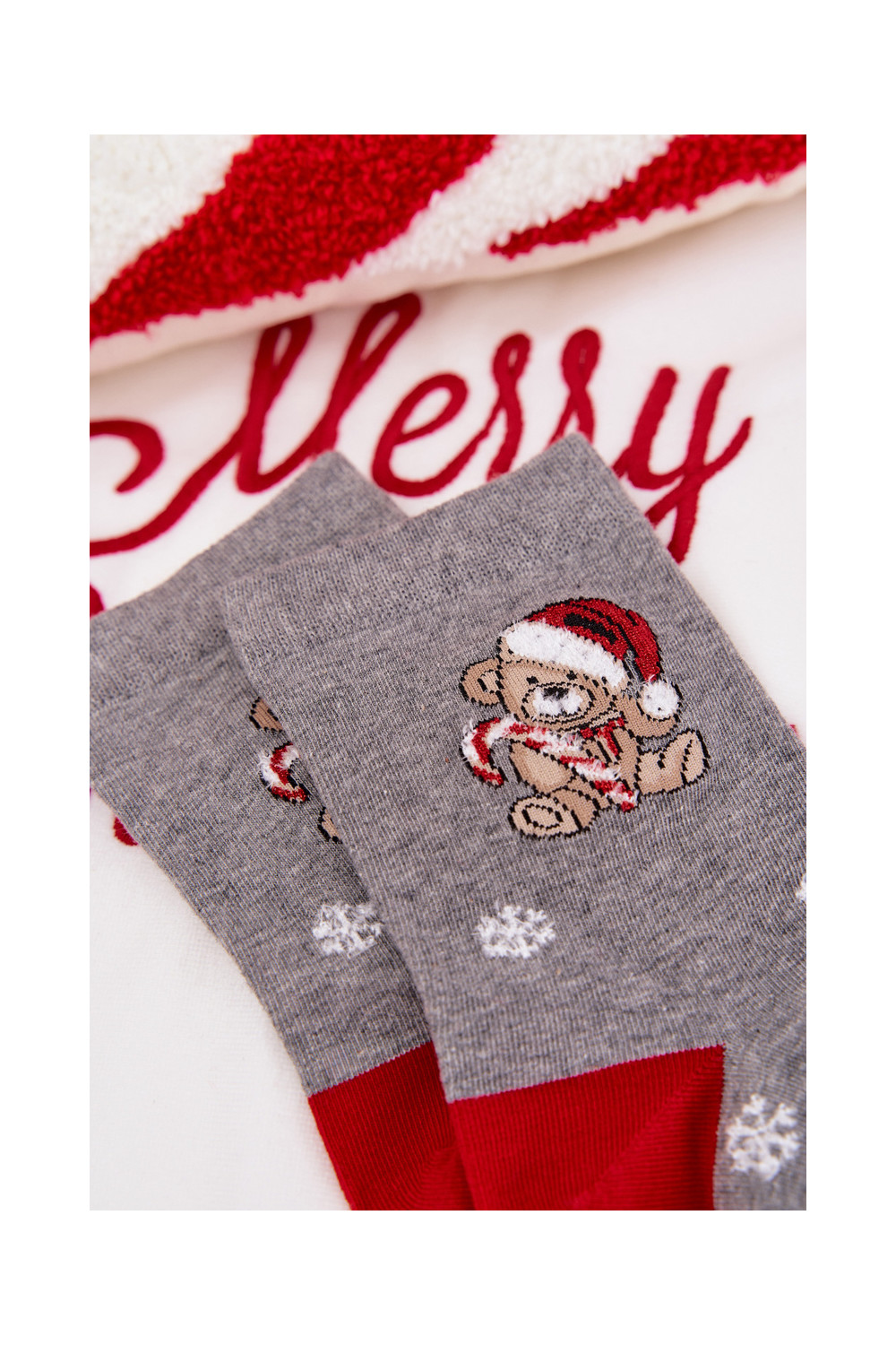 Kojinės Moteriškas Christmas Snaigės Meškiukai Dangtelyje Santa Clausa pilkos spalvos