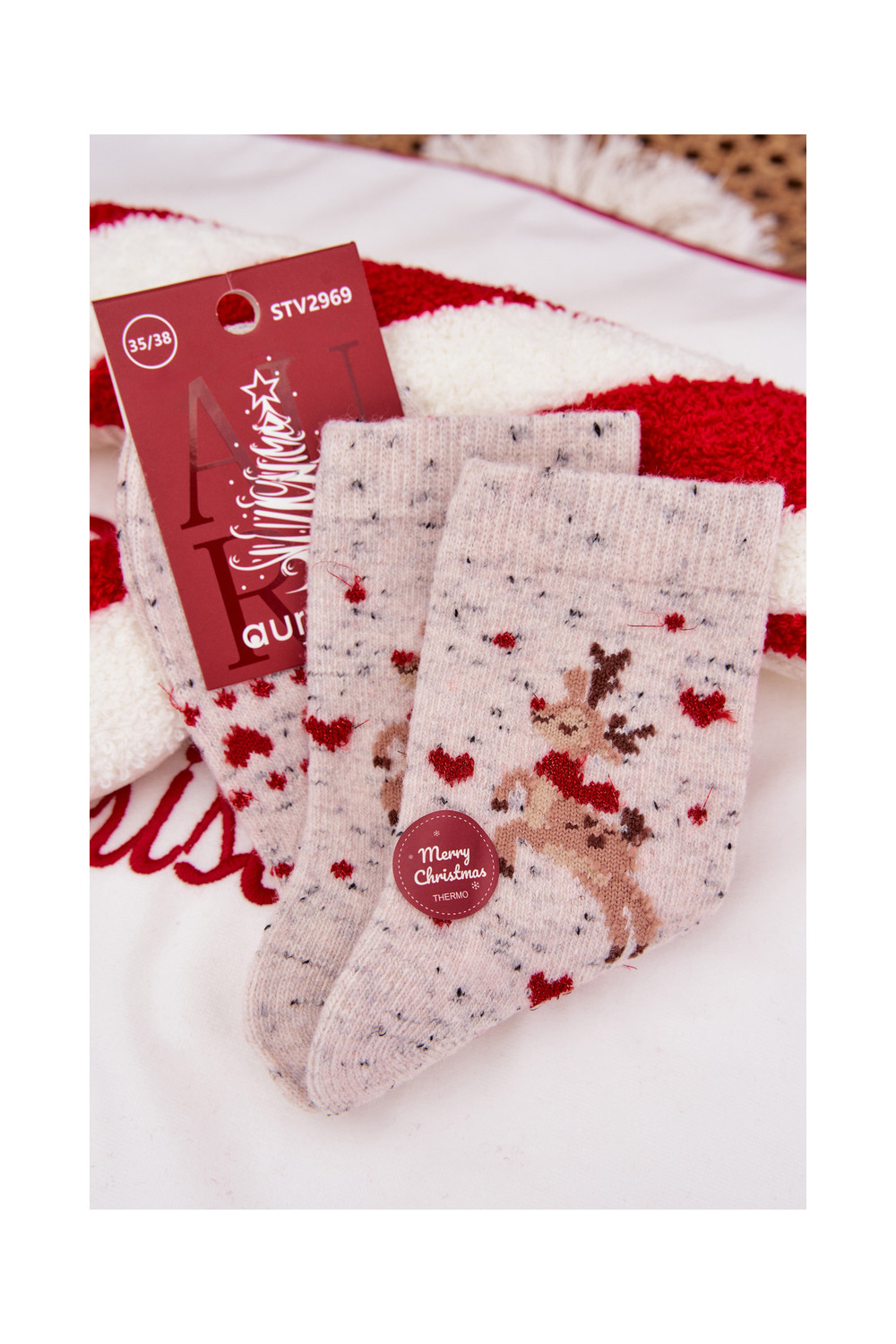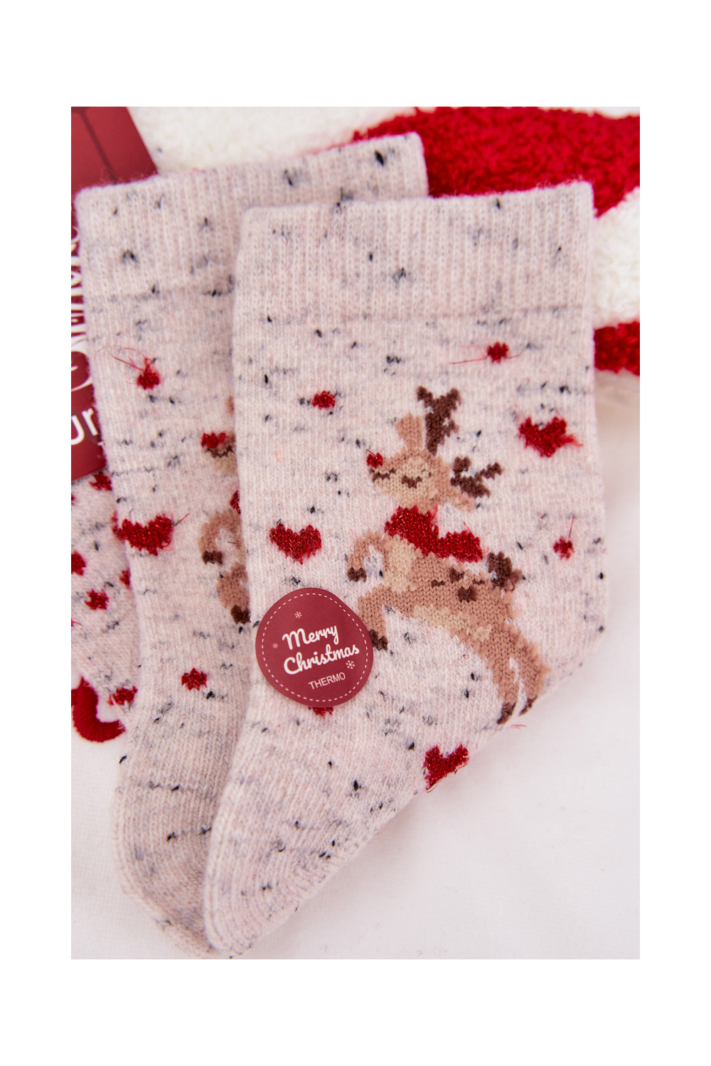 Kojinės Moteriškas Christmas su elniukais I Širdelėsmi INełna Alpaka pilkos spalvos