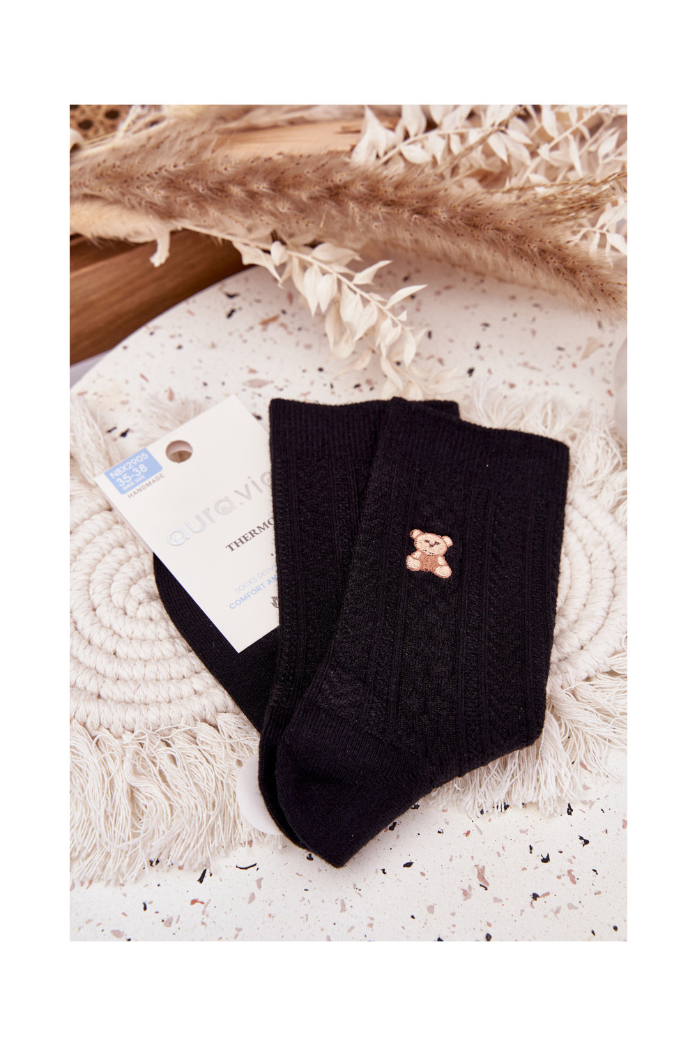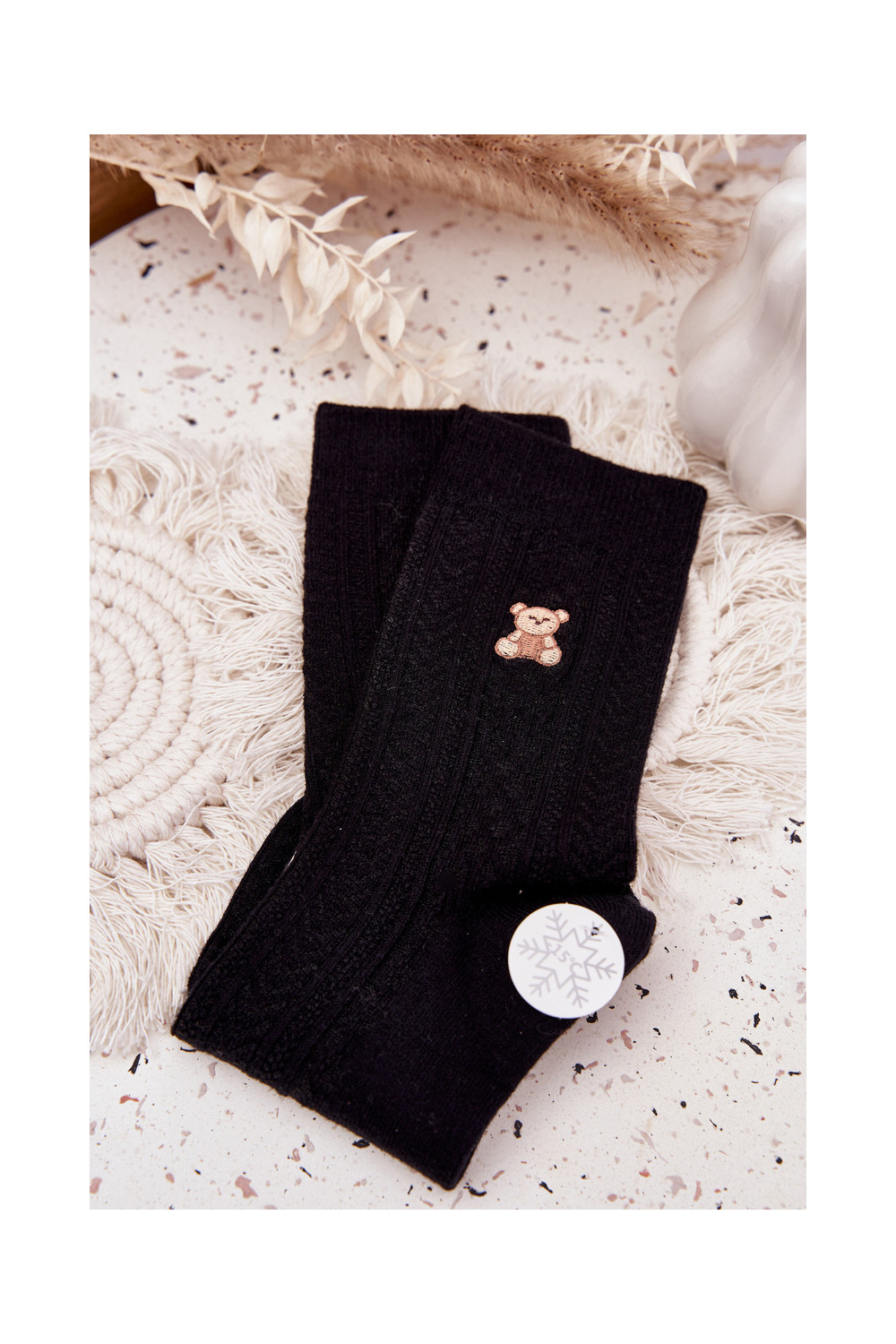 šilti Kojinės Moteriškas Su Vilna Meškiukai juodos spalvos