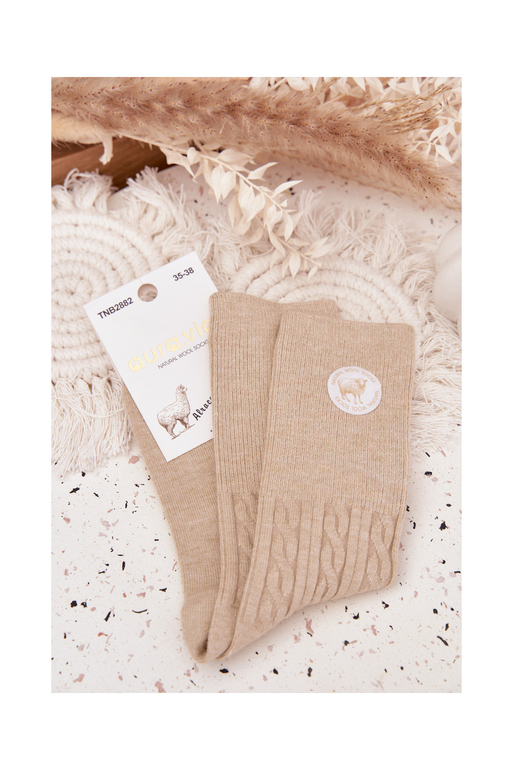 Długie INełniane Kojinės Moteriškas smėlio spalvos
