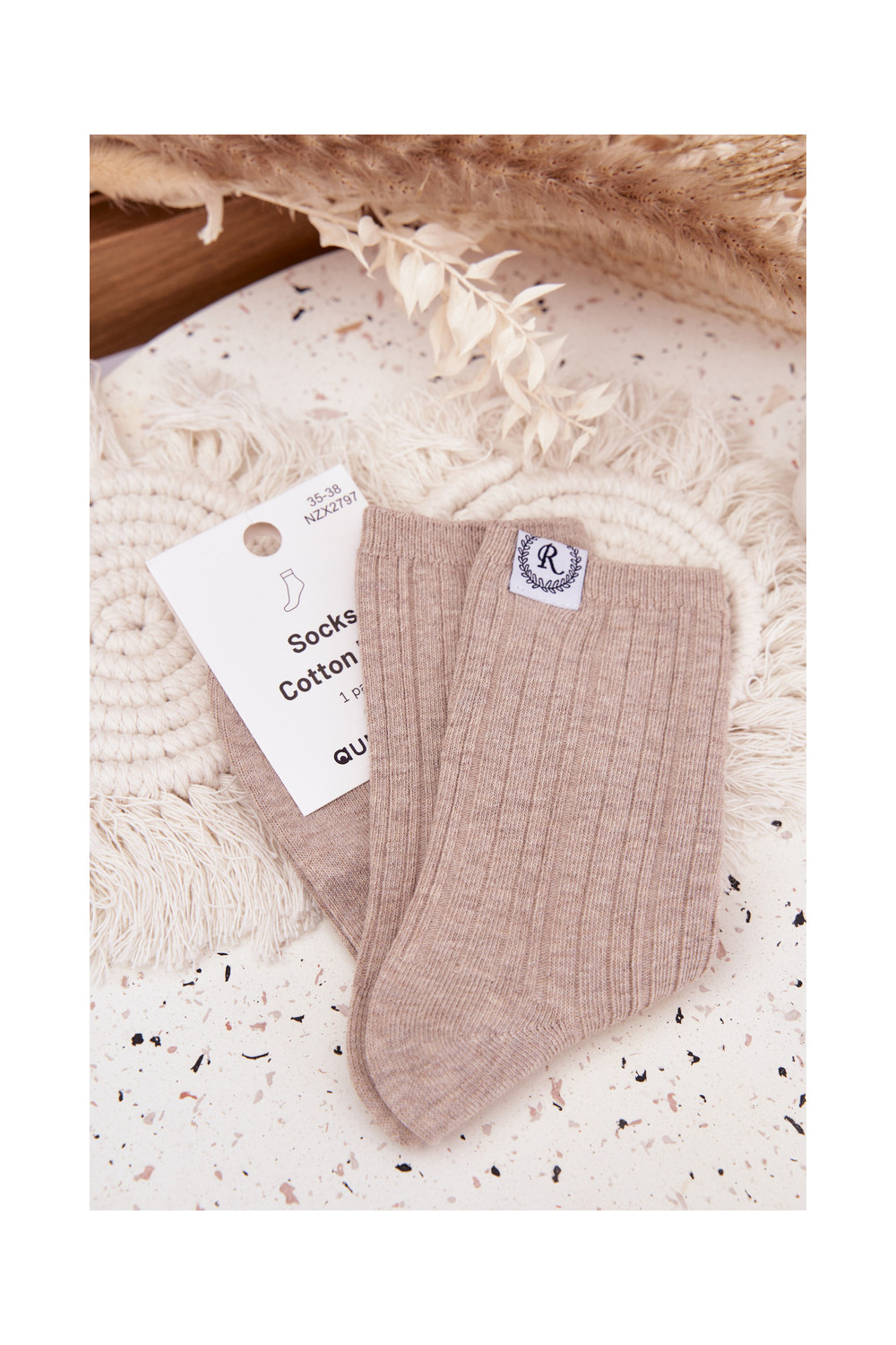 Medvilninės kojinės su dryžiais Moteriškas smėlio spalvos