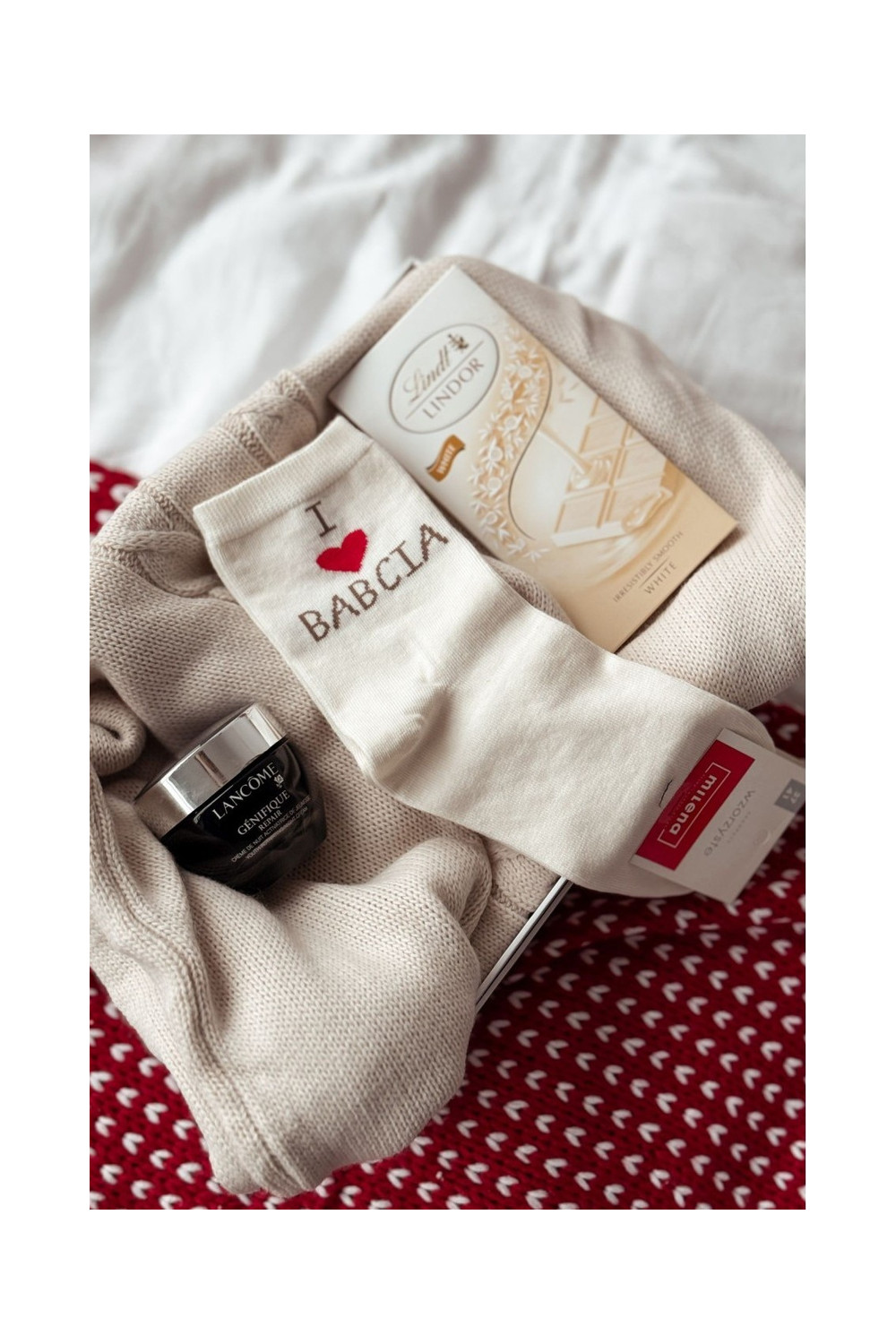 Kojinės Moteriškas su užrašu I Love Babcia dramblio kaulo spalvos