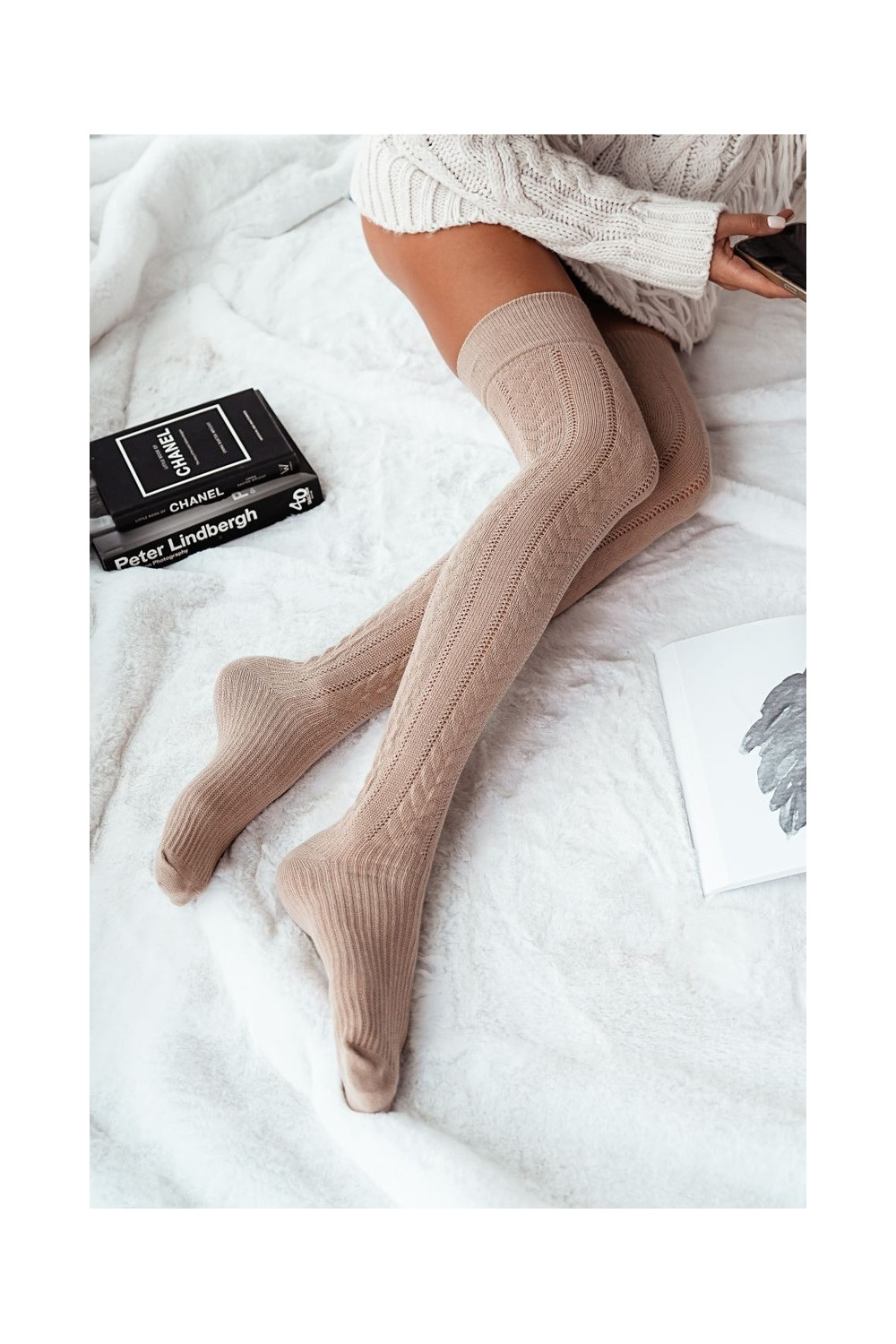 Zakolanówki  su aužūro elementais Warkocz smėlio spalvos
