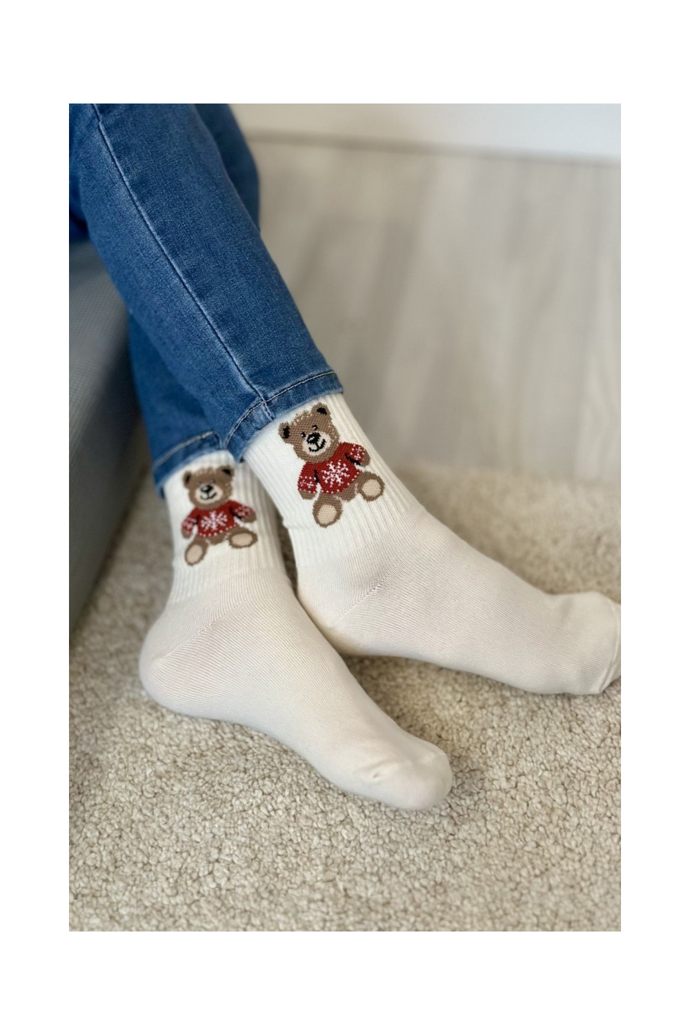 Vaikiškos kojinės  MeškiukaiSweterku dramblio kaulo spalvos
