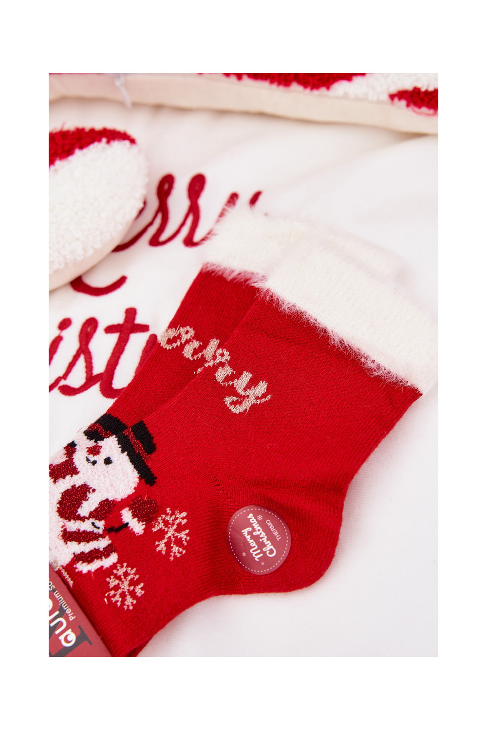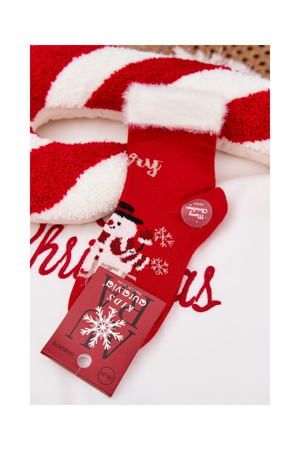Kalėdinės kojinės Vaikiški su kailiuku I BałĮanem INełna Alpaka raudonos spalvos