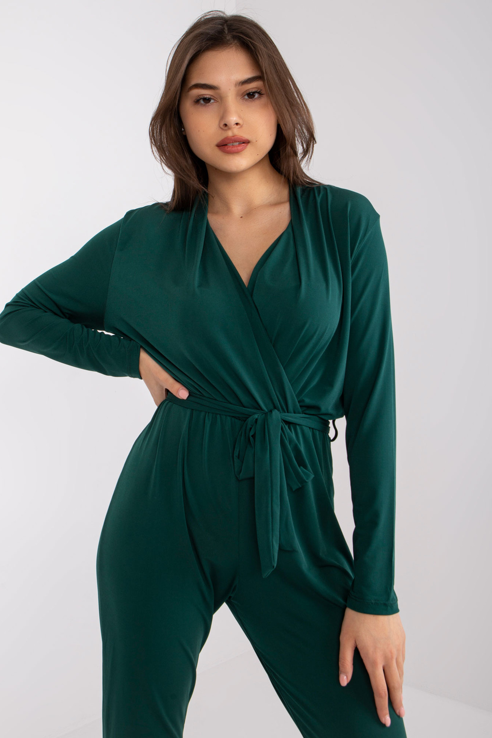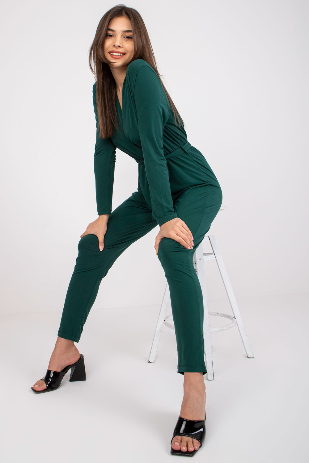 Tamsiai žalias kombinezonas su serafini voko iškirpte .