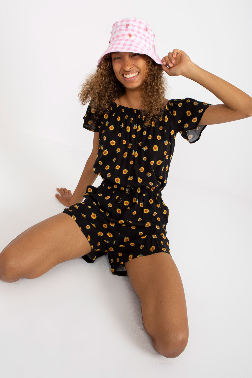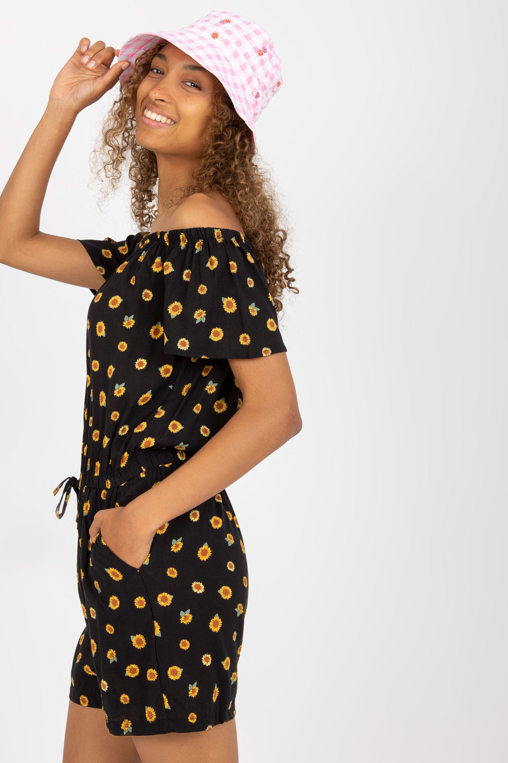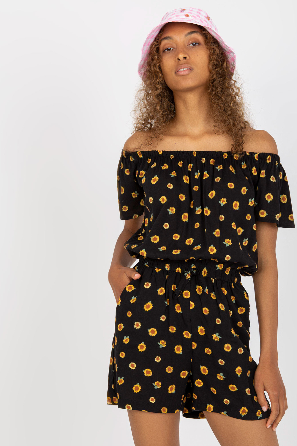 Juodas trumpas ispaniškas kombinezonas su SUBLEVEL raštais .