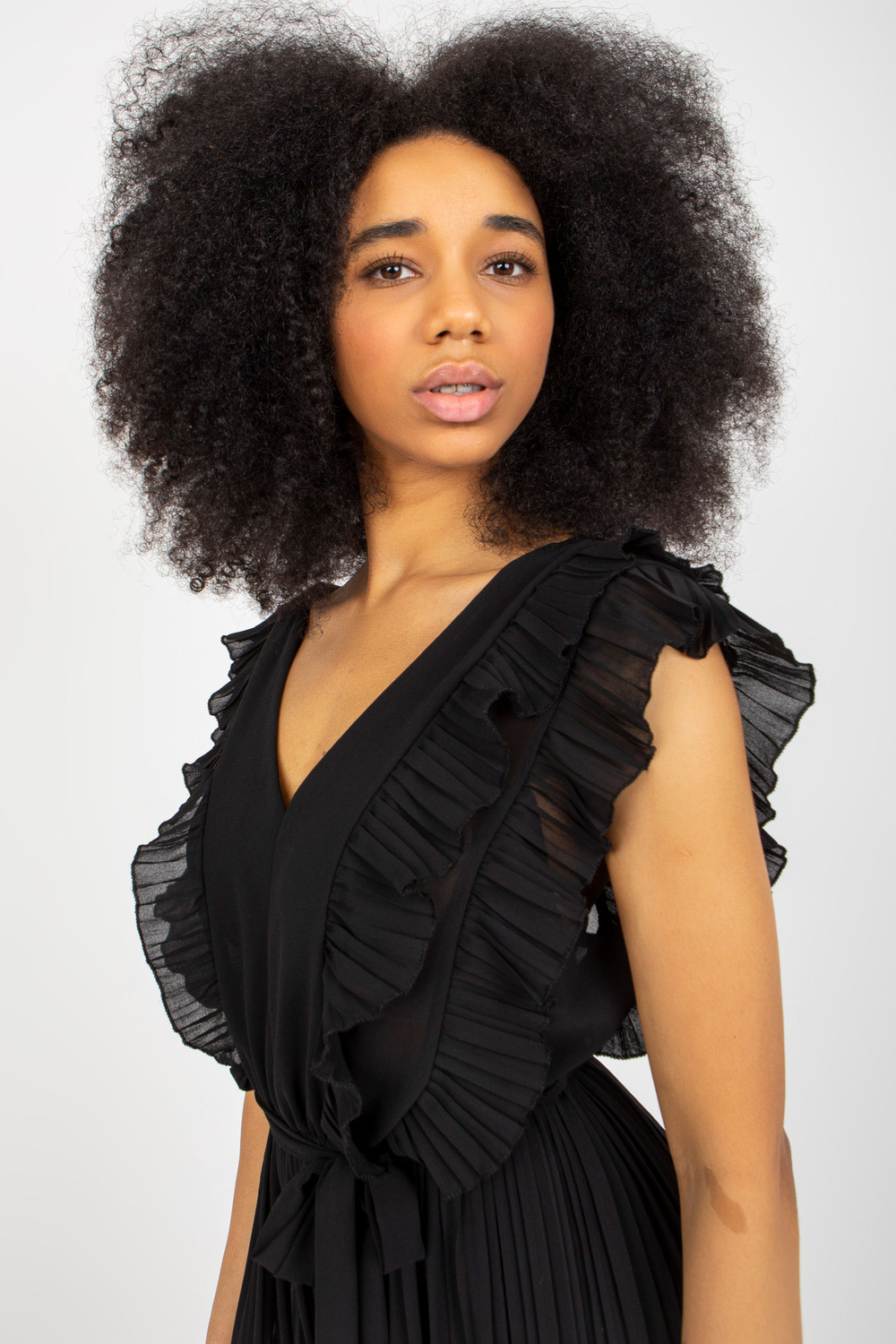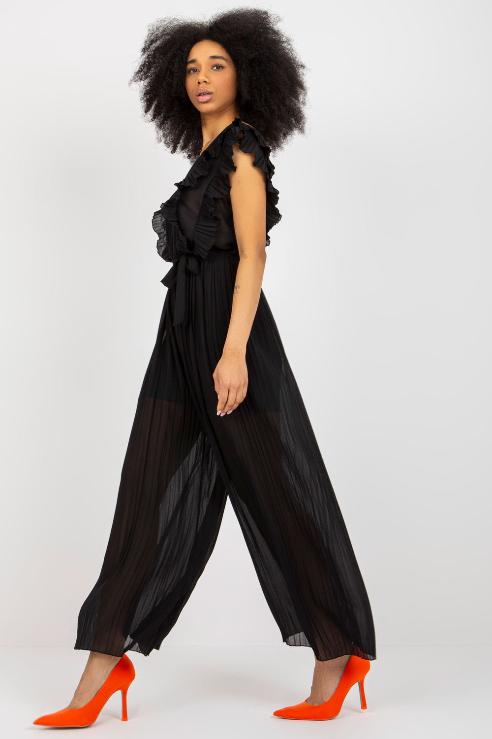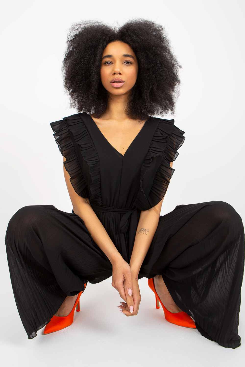Juodas moteriškas kombinezonas plačiomis kojomis OCH BELLA.