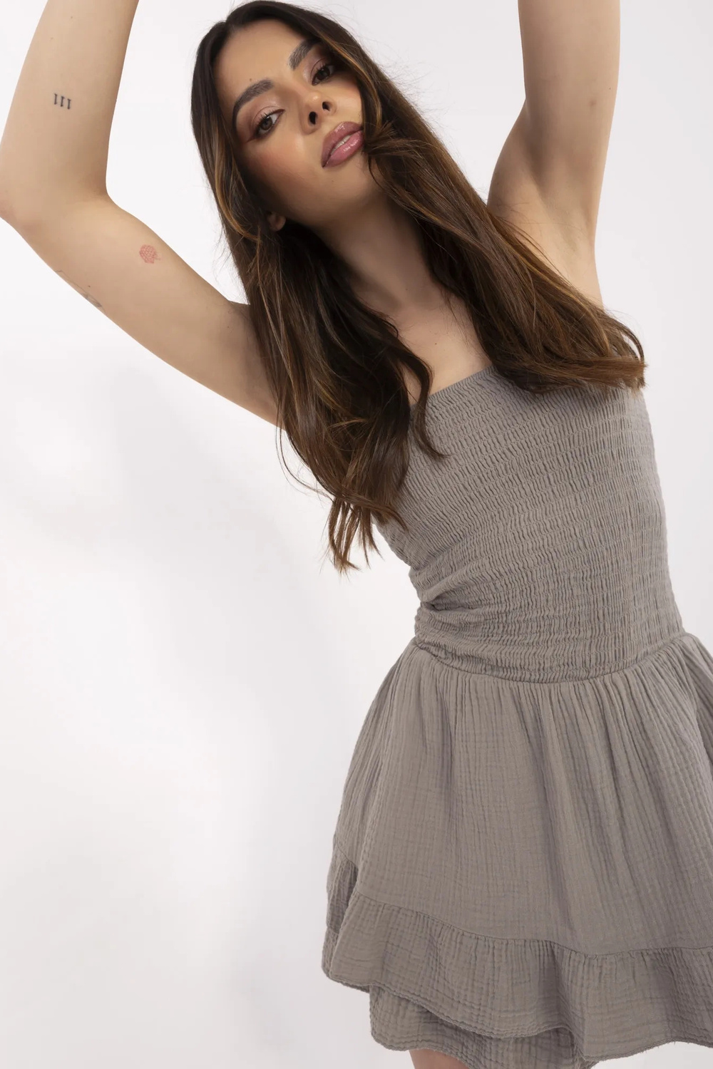 Modelis dėvi vieno dydžio dydį. Modelio išmatavimai: ūgis 175 cm, krūtinė 90 cm, juosmuo 66 cm, klubai 94 cm.