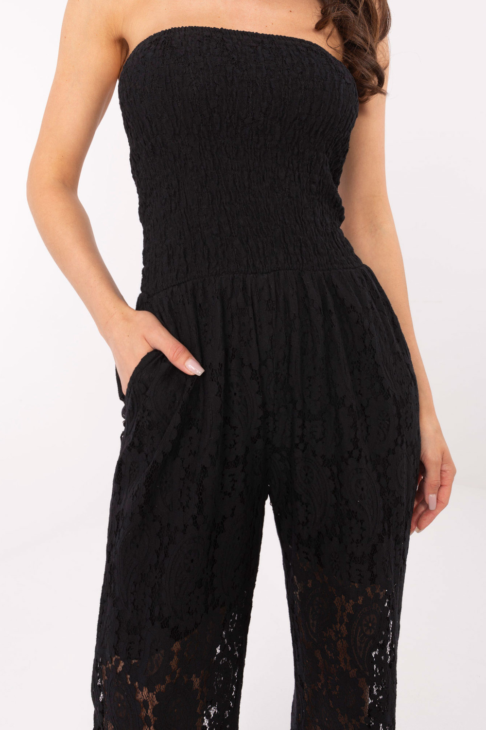Vieno dydžio kombinezono išmatavimai, išmatuoti plokščiai: plotis po pažastimis - 31 cm (ištiestas), plotis po pažastimis - 60 cm (po tempimo), juosmens plotis - 30 cm (ištiestas plokščiai), juosmens plotis - 58 cm (po tempimo), klubų plotis - 52 cm, bendras ilgis - 131 cm.