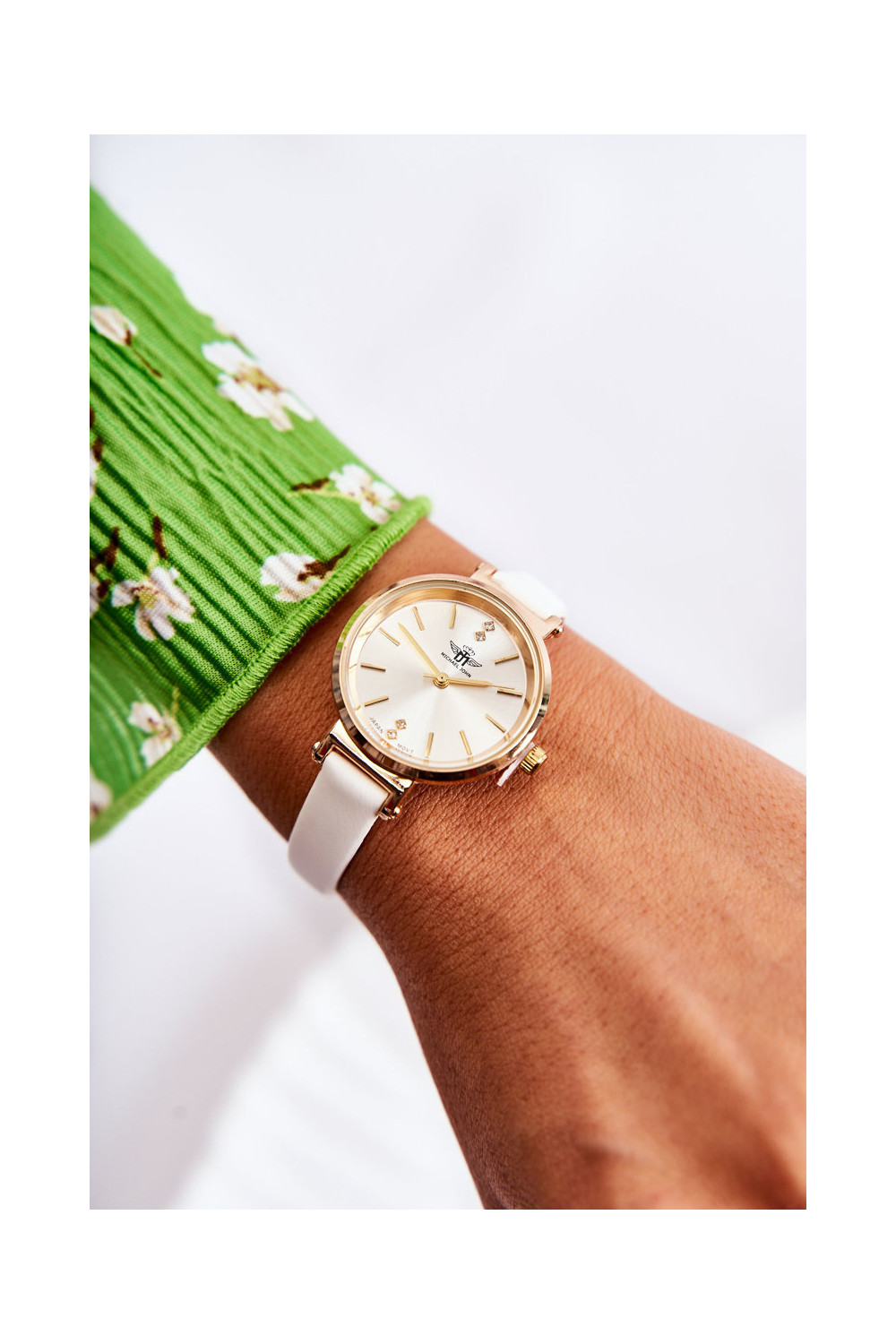 Moteriškas laikrodis Michael John aukso spalvos su cirkonio akutėmis