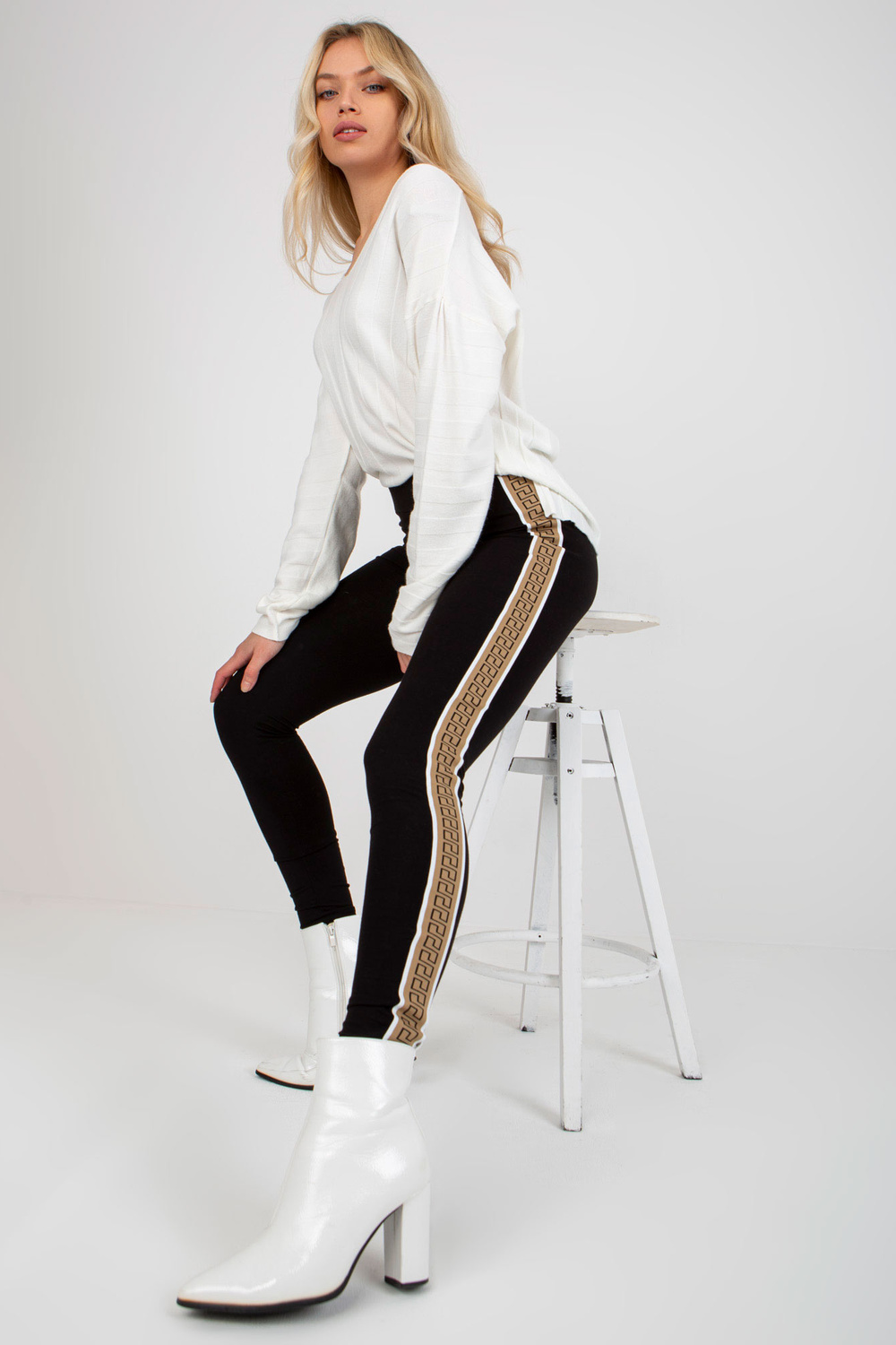 Juodos ir smėlio spalvos moteriškos kasdieninės antblauzdžiai su juostelėmis strong> .