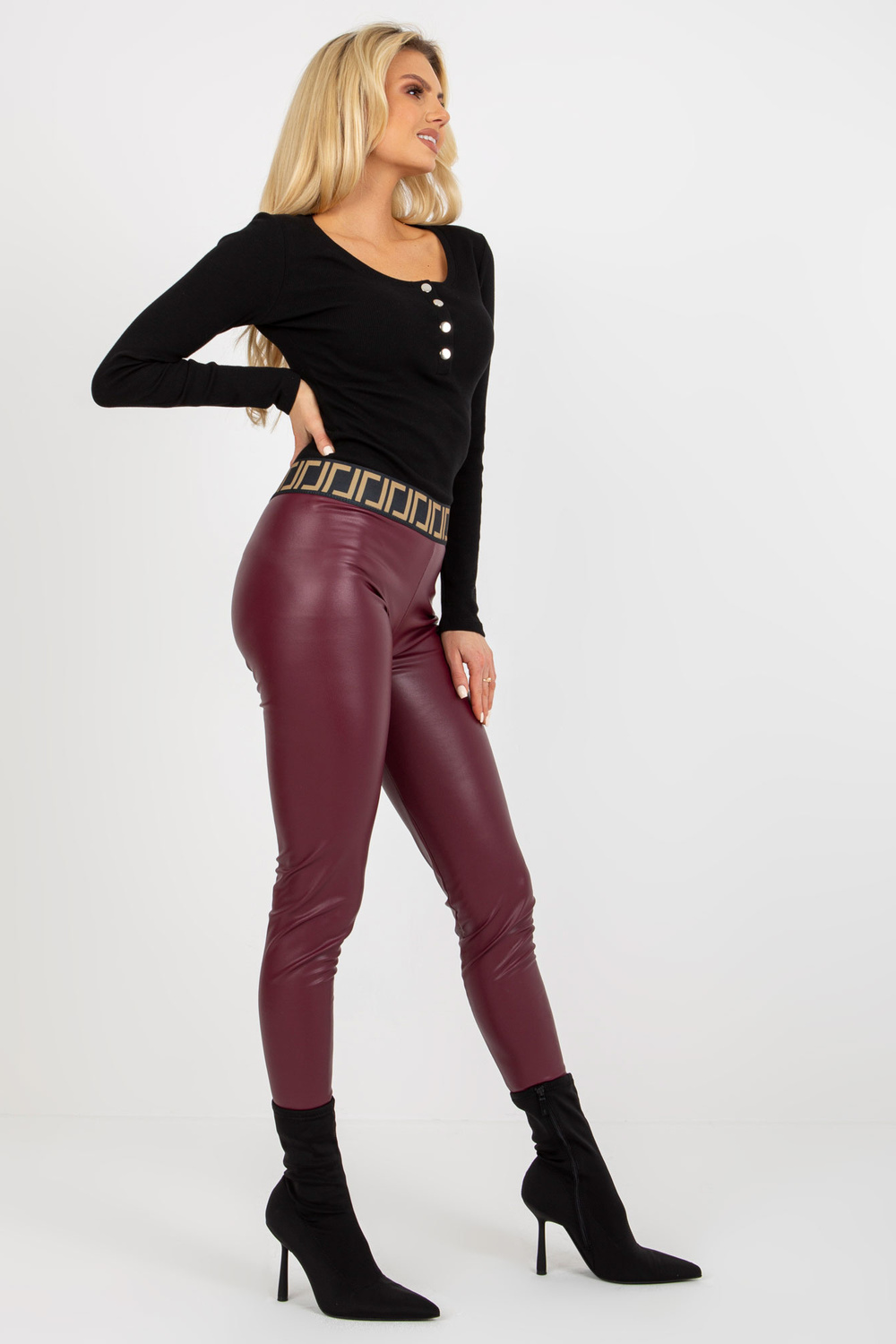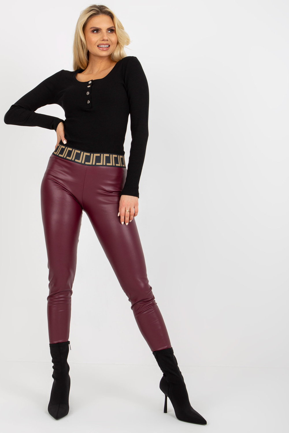 Burgundijos spalvos moteriškos antblauzdžiai, apšiltinti ekologiška oda.