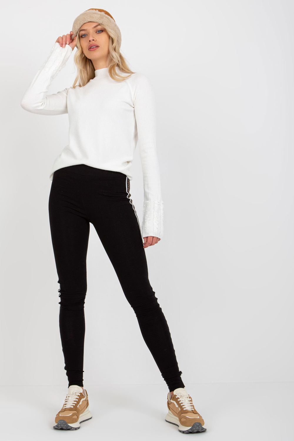 Czarne bawełniane legginsy na co dzień z lampasami .