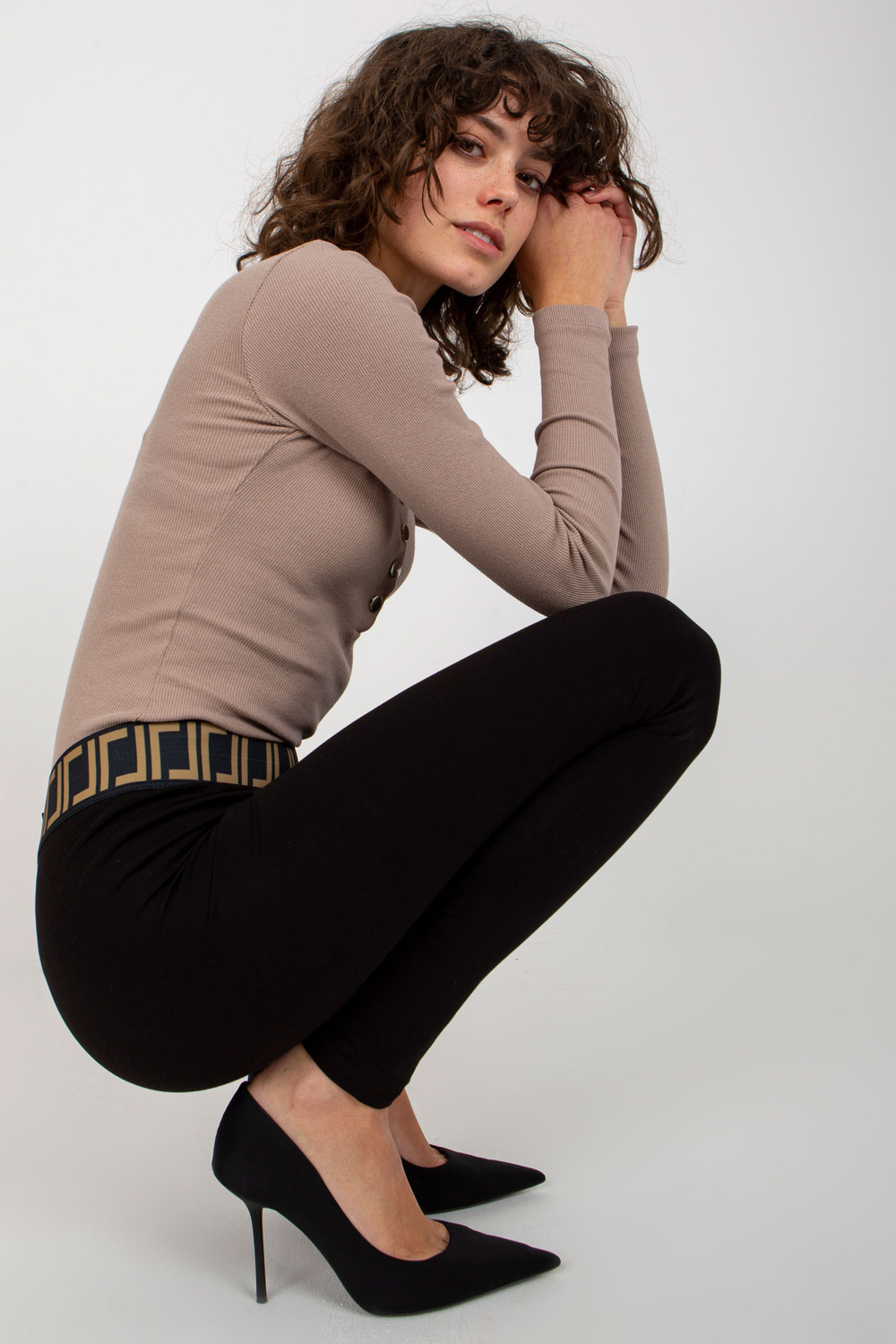Juodi medvilniniai laisvalaikio antblauzdžiai su elastine juostele ties juosmeniu.
