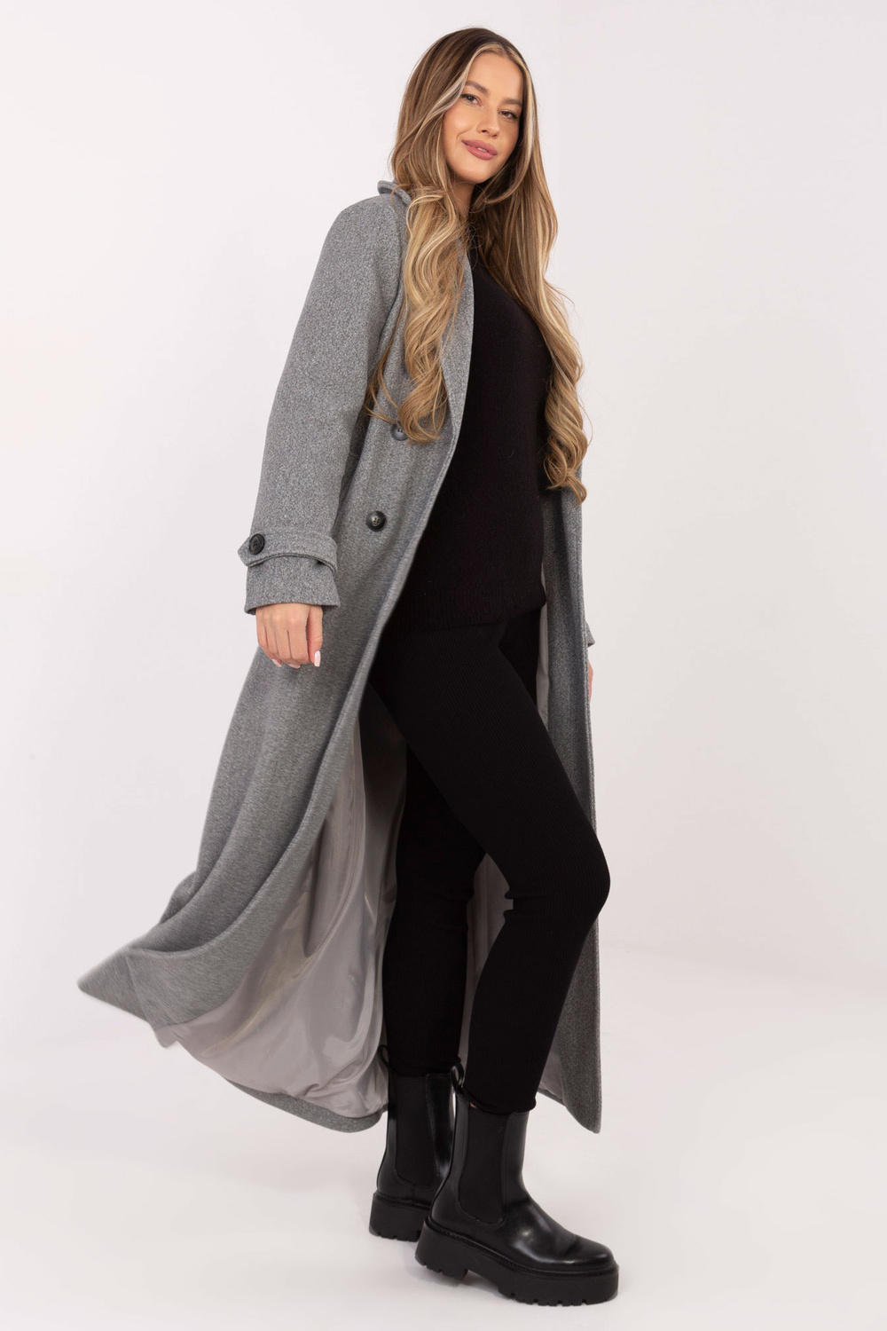 Modelis dėvi S dydį. Modelio išmatavimai: ūgis 176 cm, krūtinė 90 cm, liemuo 62 cm, klubai 94 cm.