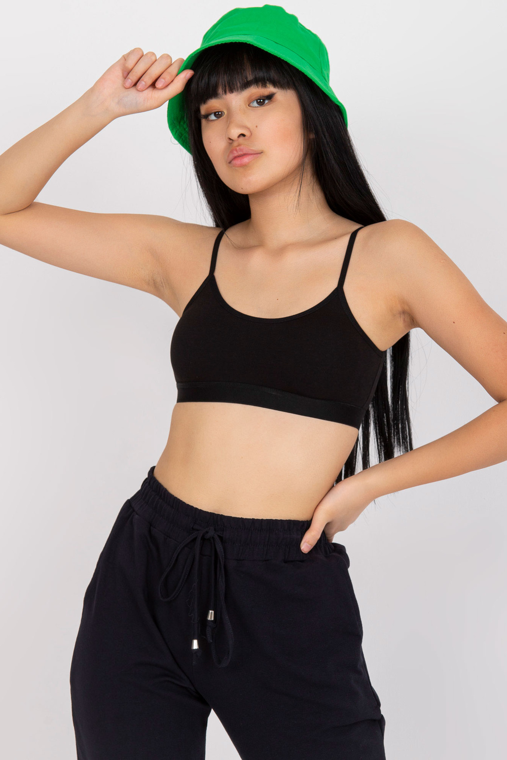 Juodas trumpas sportinis viršus su standintais kaušeliais.