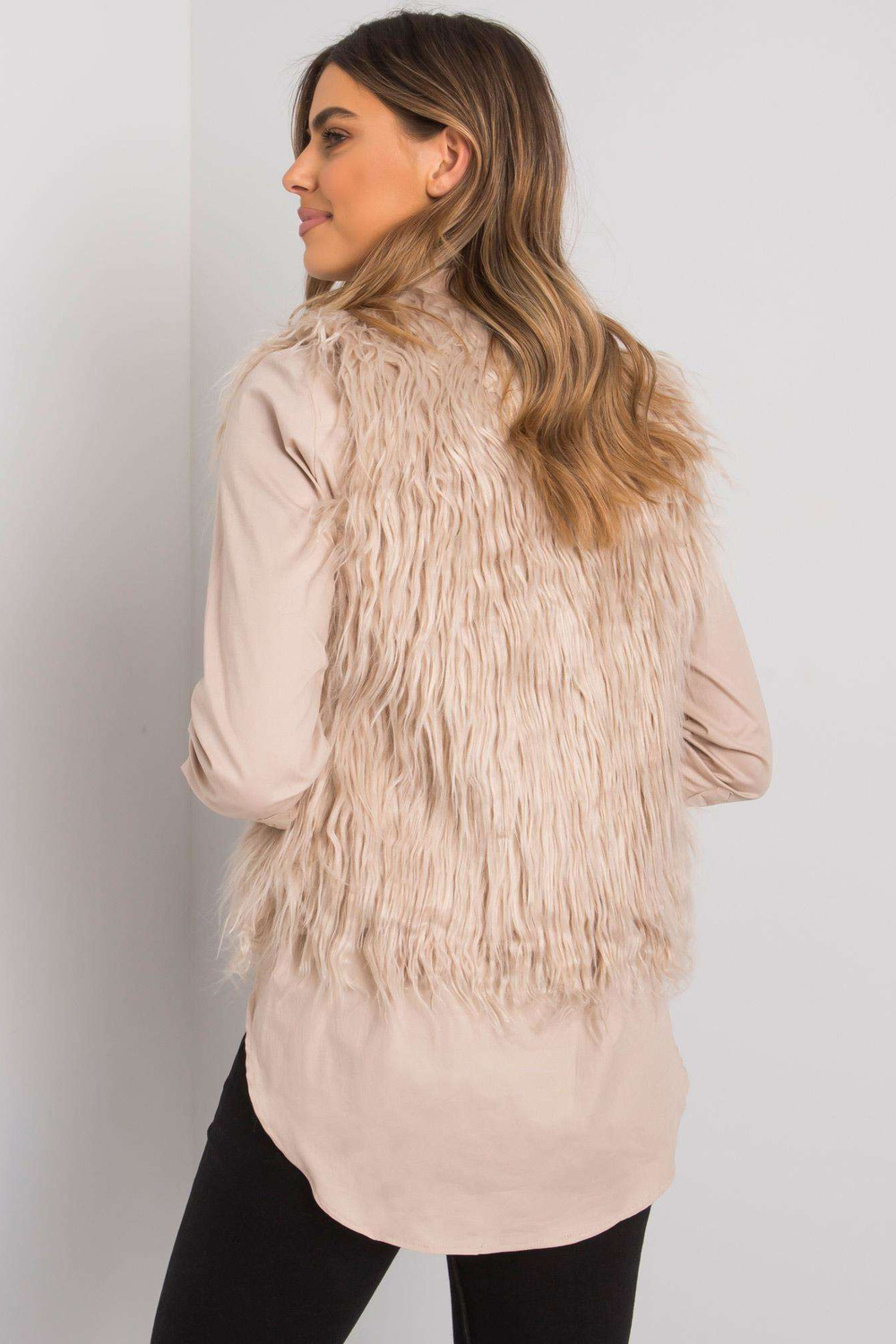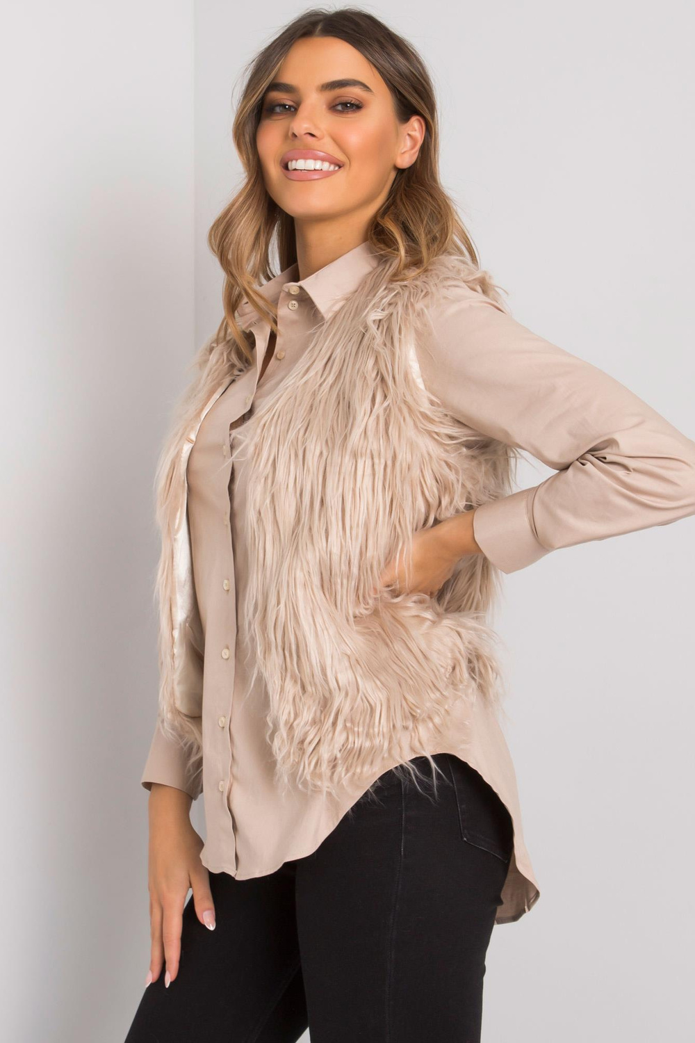 Smėlio spalvos moteriška kailinė liemenė Moncalieri OCH BELLA.