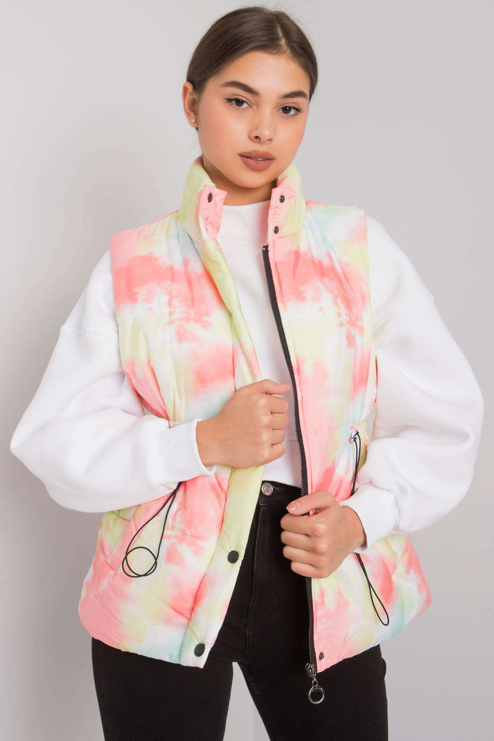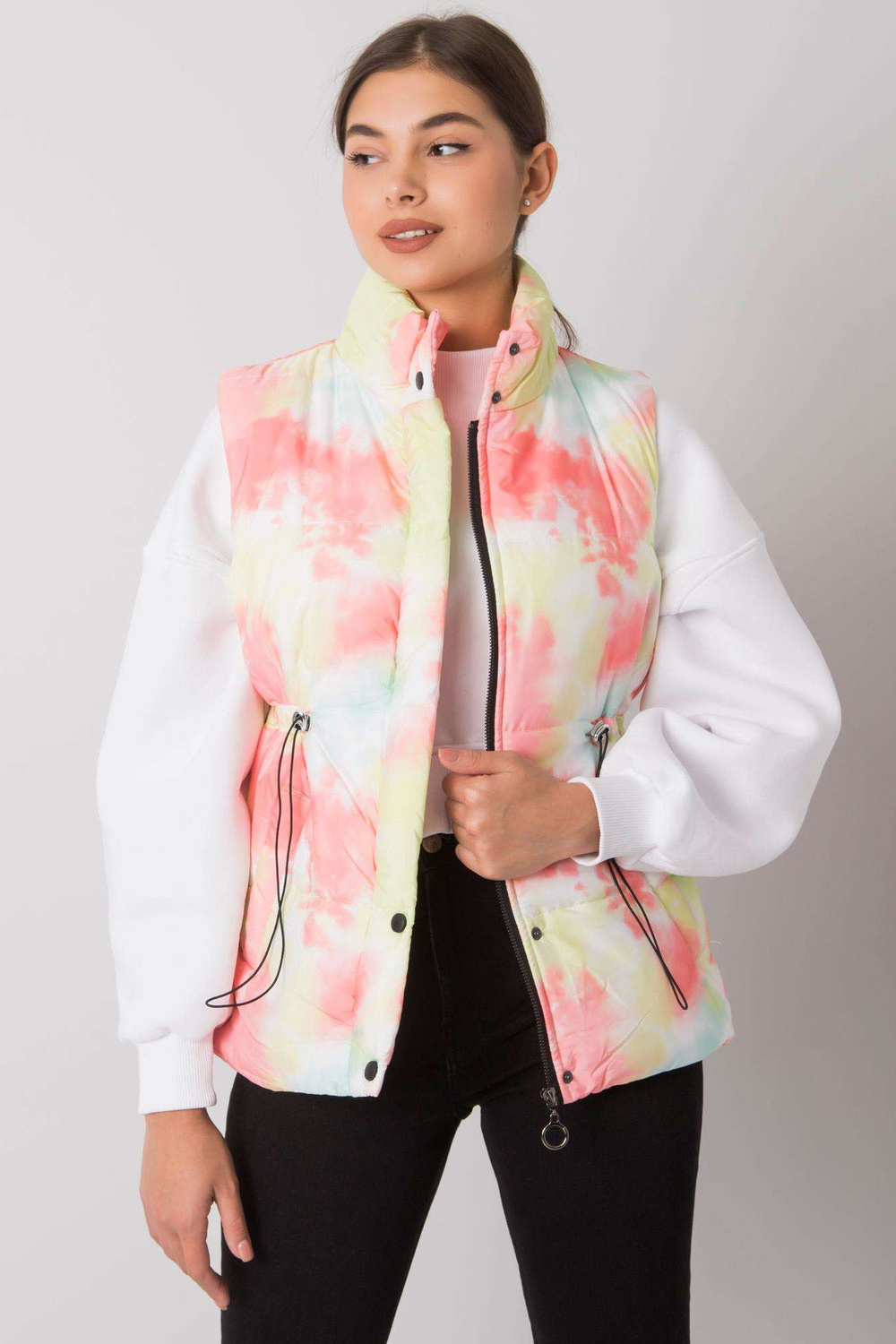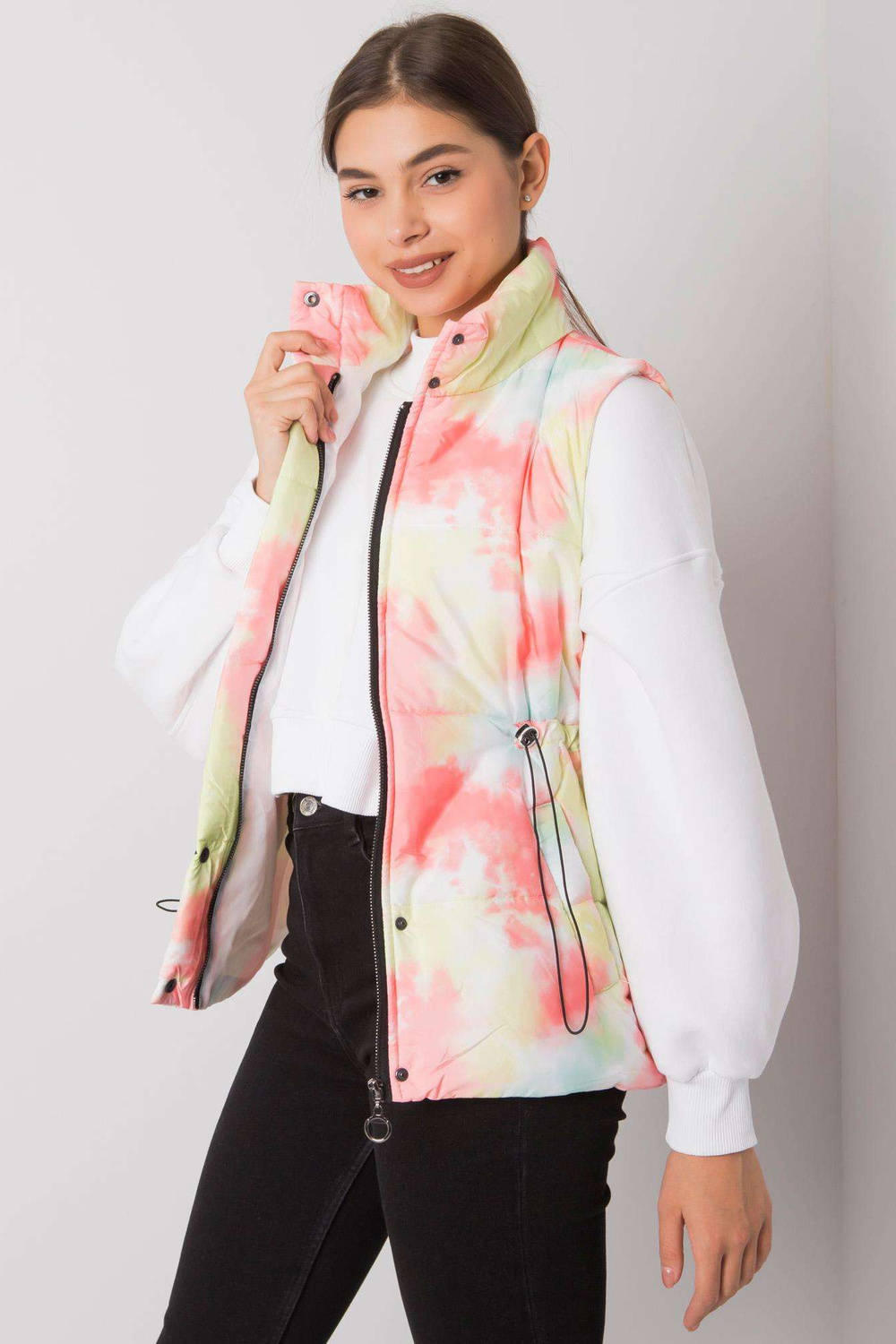 Geltona ir oranžinė liemenė su Loie juostelėmis.