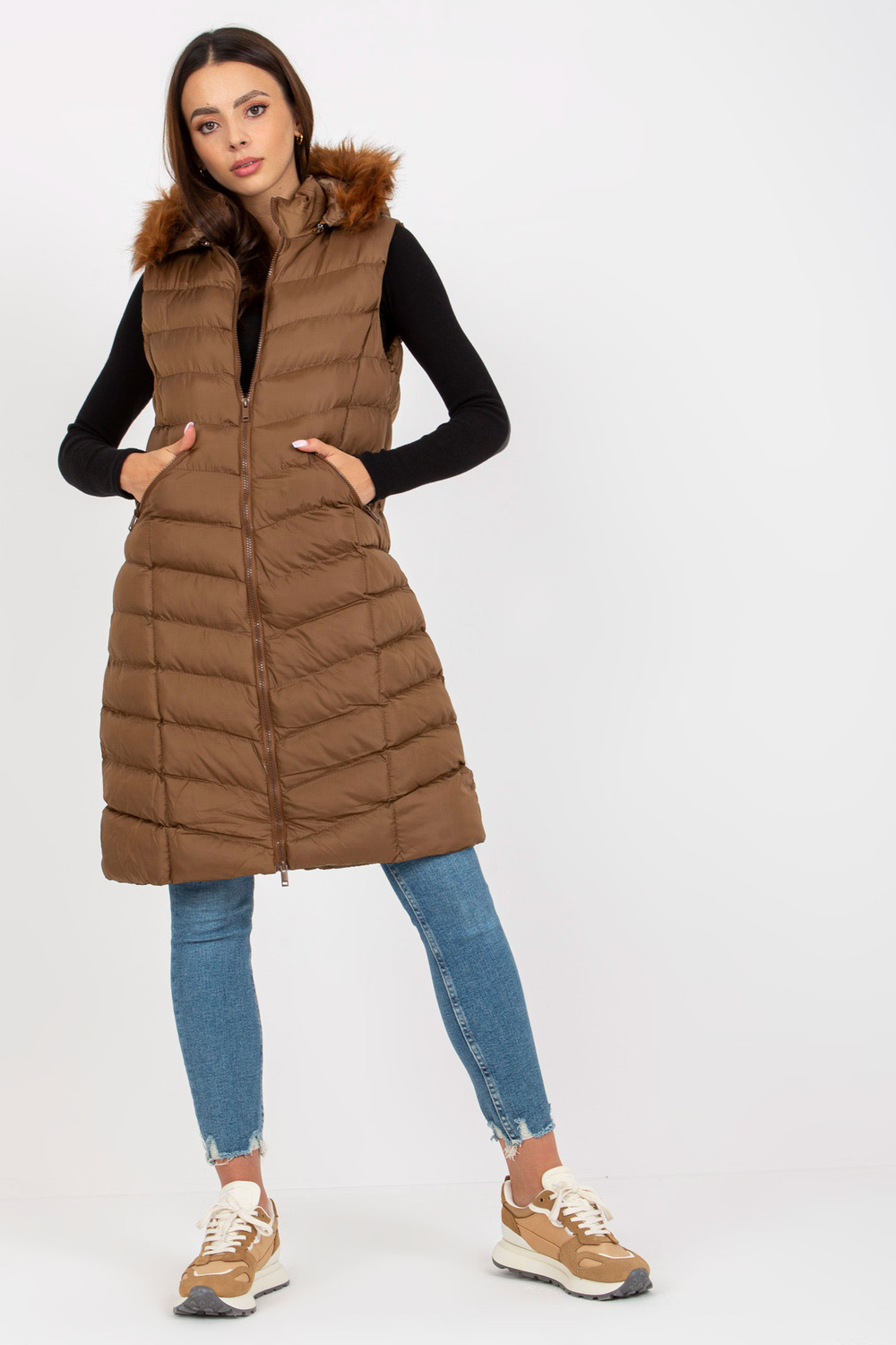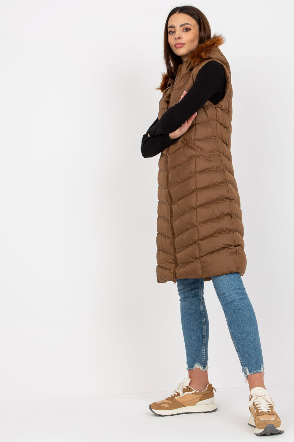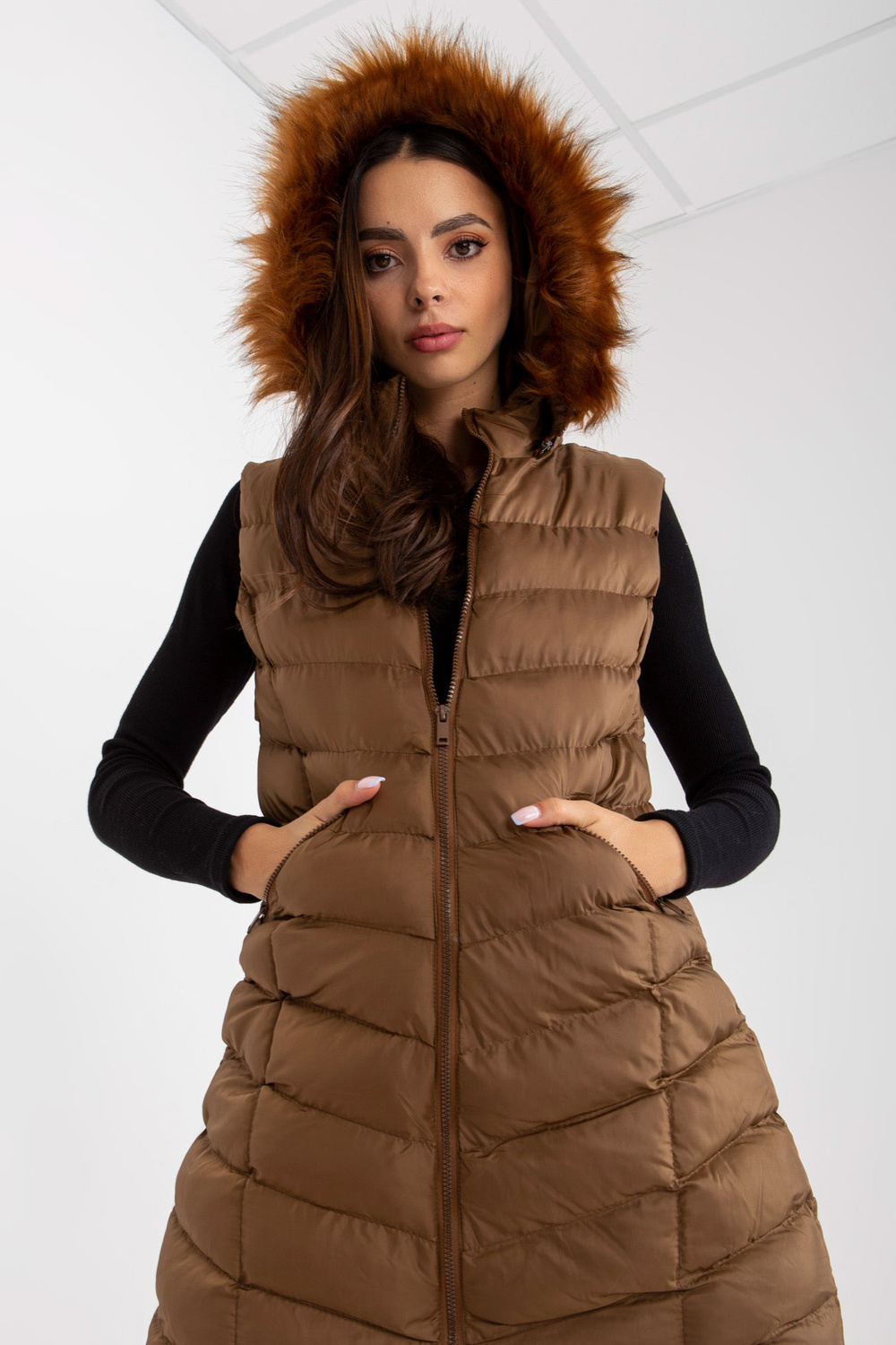 Ruduota pūkinė liemenė su kišenėmis RUE PARIS .