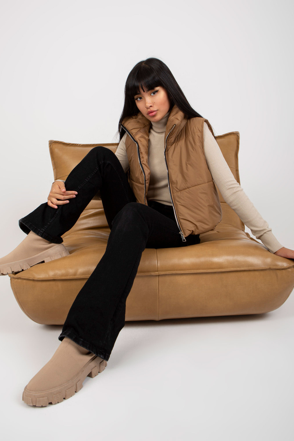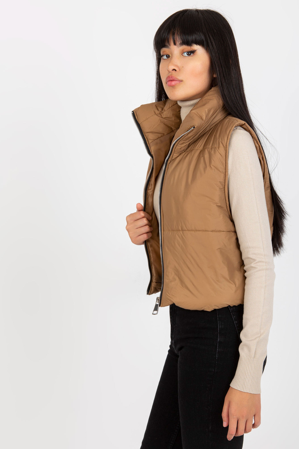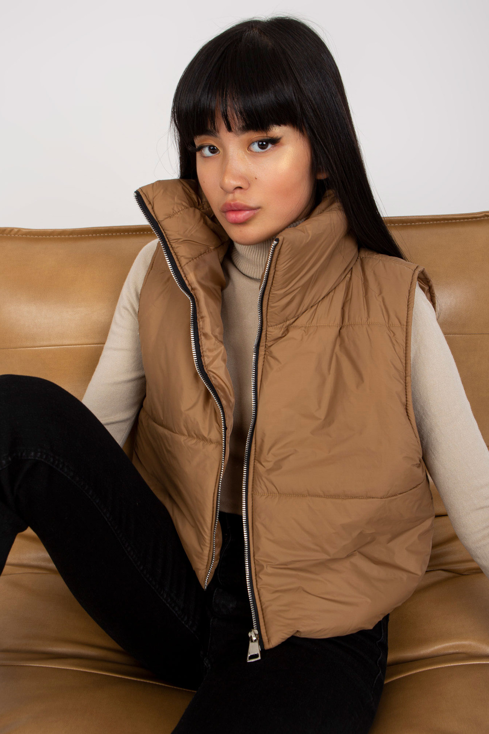 Šviesiai ruda dygsniuota pūkinė liemenė OCH BELLA .