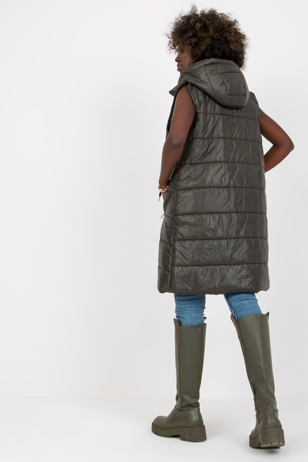 Khaki spalvos dygsniuota pūkinė liemenė su kišenėmis OCH BELLA