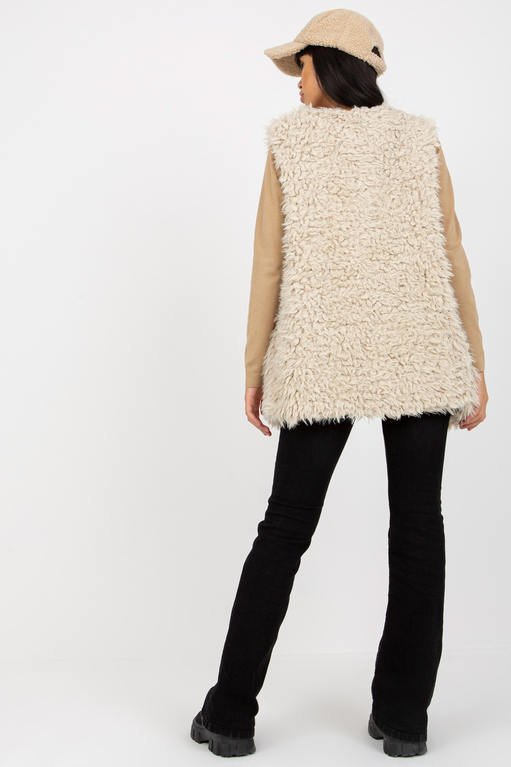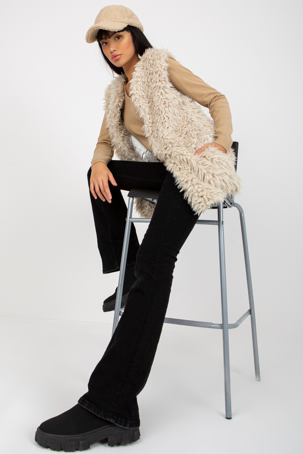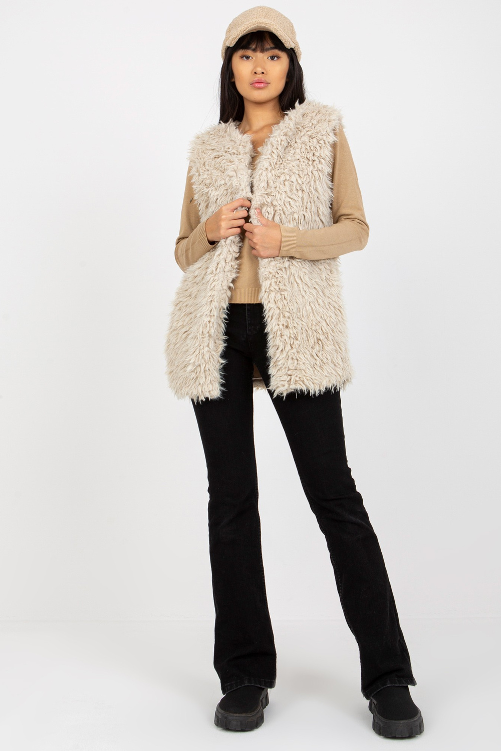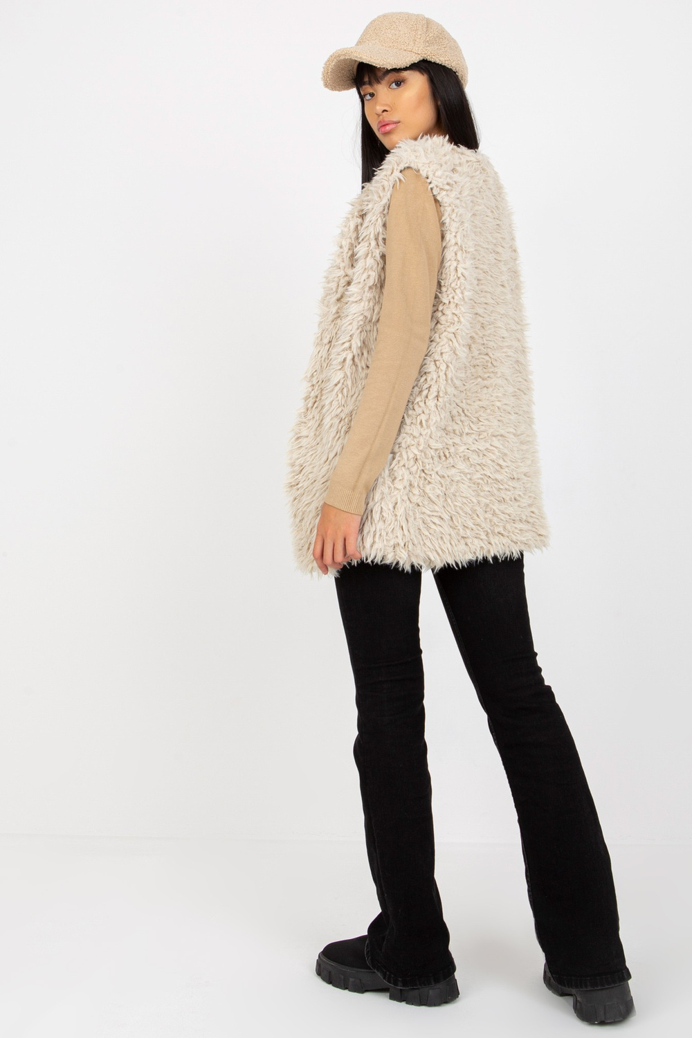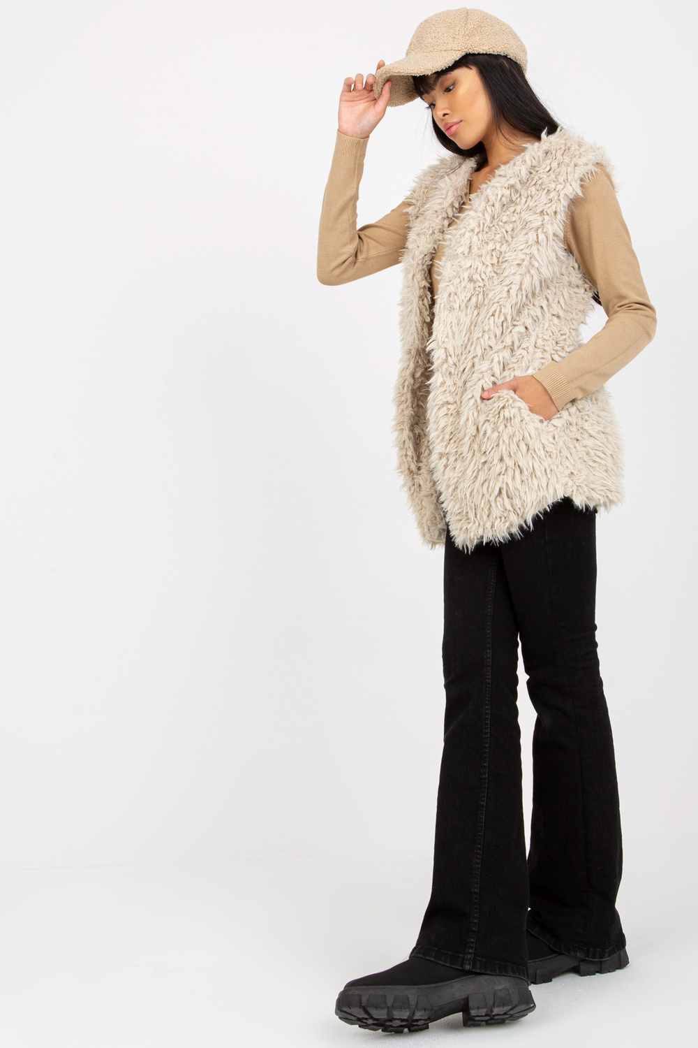 Smėlio spalvos kailinė liemenė su Hallie šleifu.
