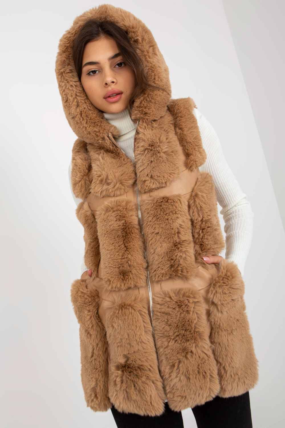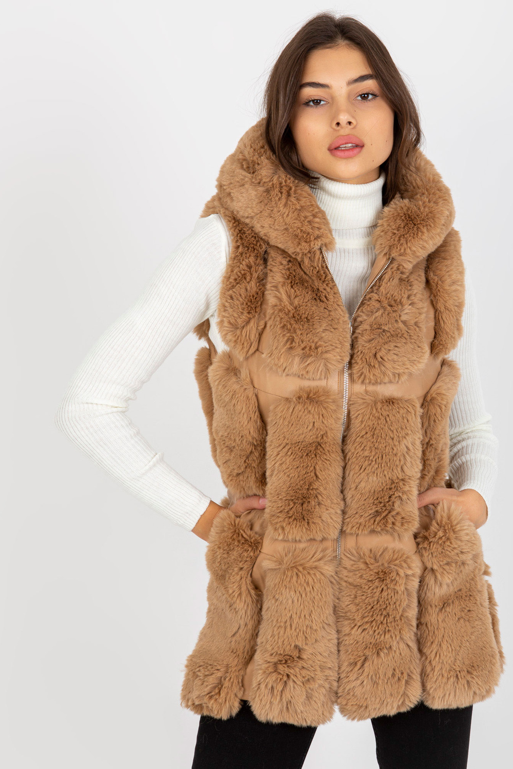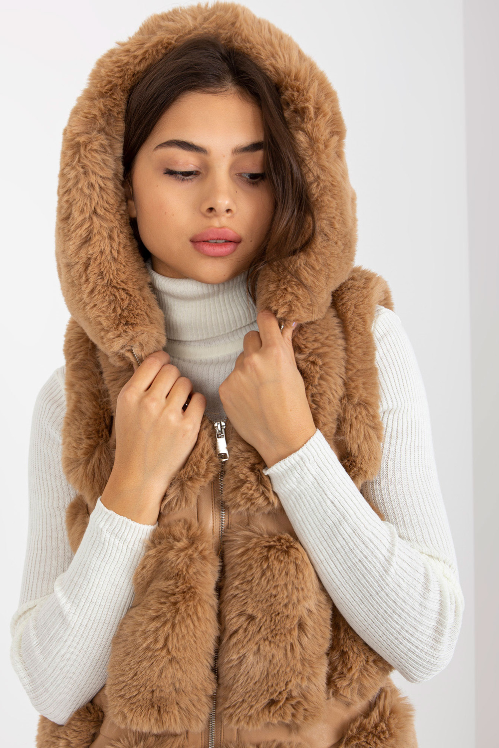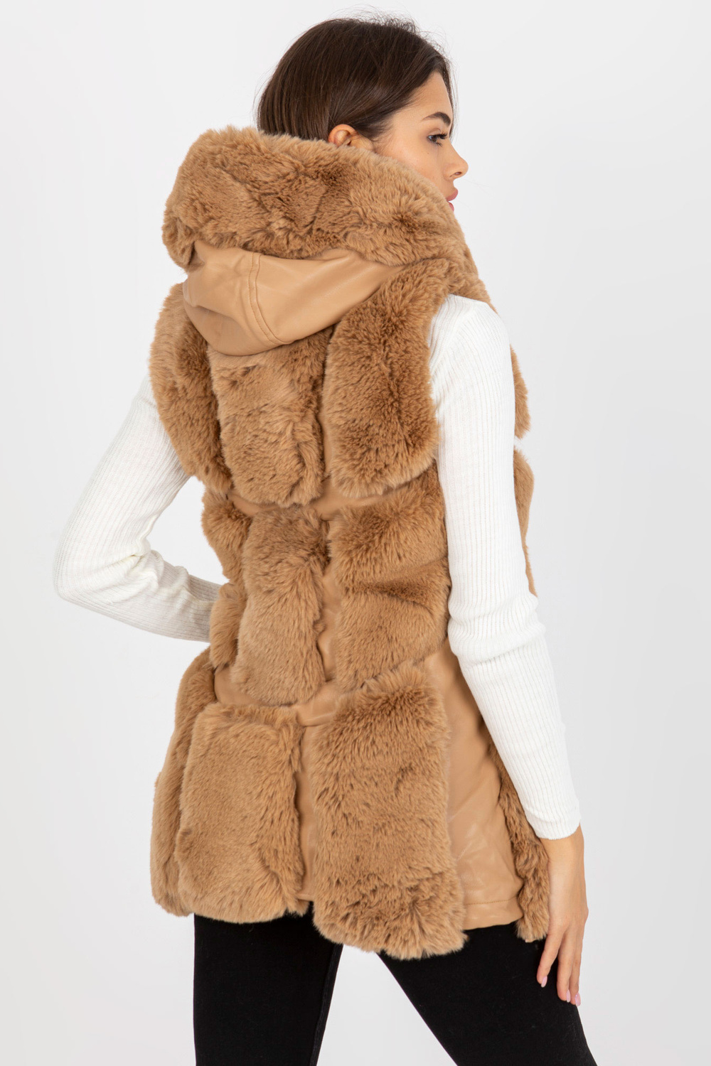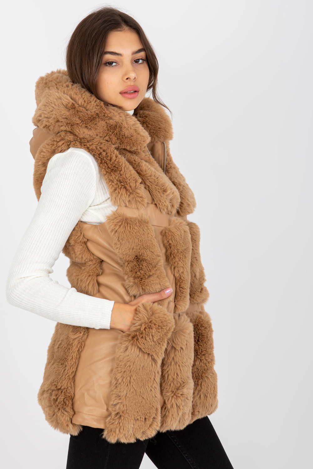 Camel eco odos liemenė su kailiu ir kišenėmis.