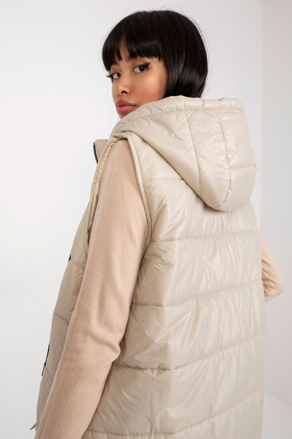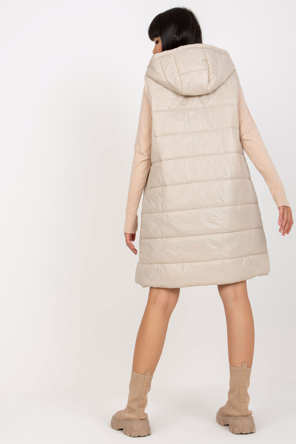 Šviesiai smėlio spalvos ilga dygsniuota pūkinė liemenė OCH BELLA . aksesuarai: nuimamas gobtuvas, pamušalas, kišenės, dirželiai Medžiagos sudėtis: 100% nailono skalbimo būdas: skalbimas mašinoje 30°C Gaminio kodas: TW-KZ-BI-82019.09 dominuojantis raštas: lygus Stilius: laisvalaikis: ca