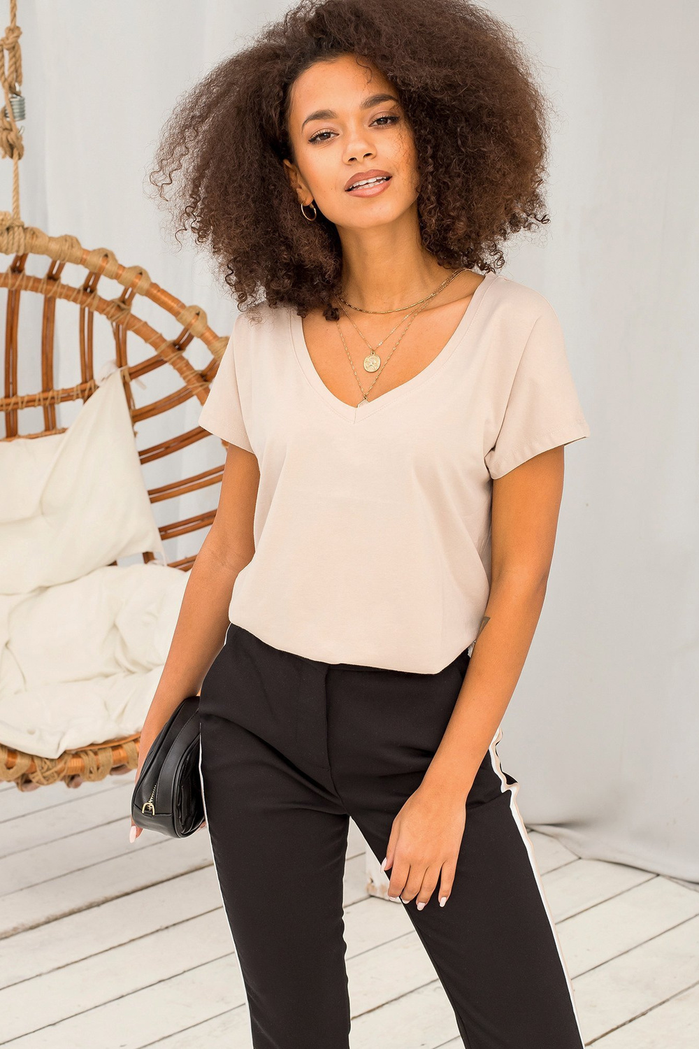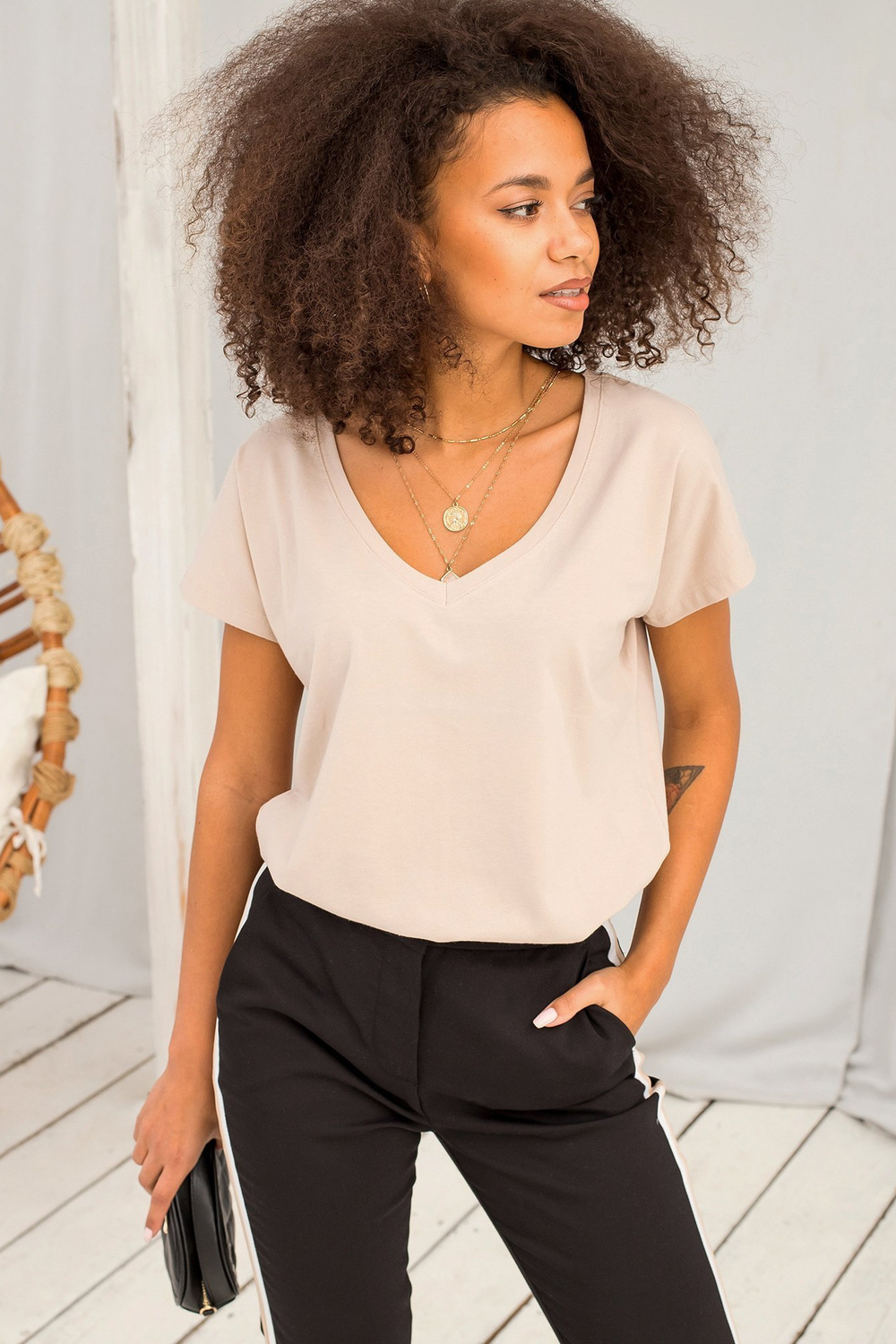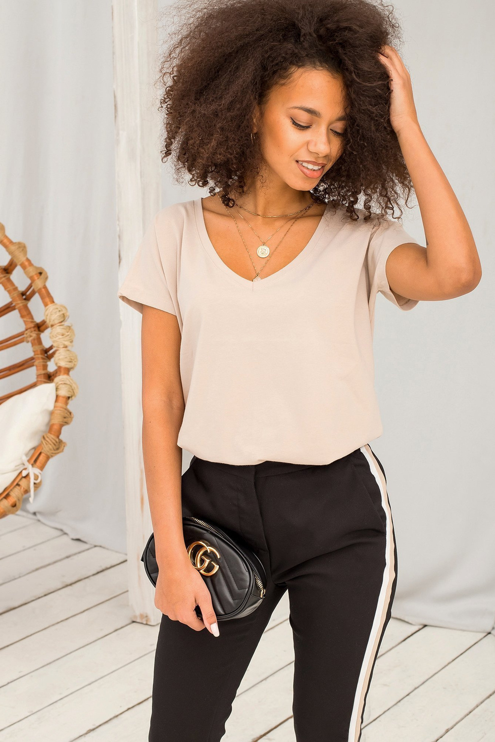 Pagrindinio stiliaus drabužiai pastaruoju metu labai išpopuliarėjo tarp daugelio naujausių tendencijų mėgėjai, tad pats tinkamiausias metas privatų garderobą papildyti naujais marškinėliais. Pristatytas modelis iš kitų marškinių tikrai išsiskiria dailia iškirpte su dideliu V formos iškirpte, kuri išvaizdai suteikia daug moteriško žavesio. Be to, labai patogu dėvėti ir suteiks daug žavesio visai jūsų sugalvotai išvaizdai. Dėvėkite, pavyzdžiui, su aptemptomis džinsinėmis kelnėmis ir madingais sportiniais bateliais, jei mėgstate paprastus ir kasdienius komplektus. Atrodysite seksualiai ir elegantiškai, tačiau pirmiausia teiksite patogumui. Einate į pasimatymą ar vakarėlį pas draugus? Priderinkite šiuos paprastus marškinėlius su stiletais ir prašmatniu sijonu iš naujausios internetinės kolekcijos ir išryškinsite daug prašmatnumo iš savo išvaizdos.< /font>