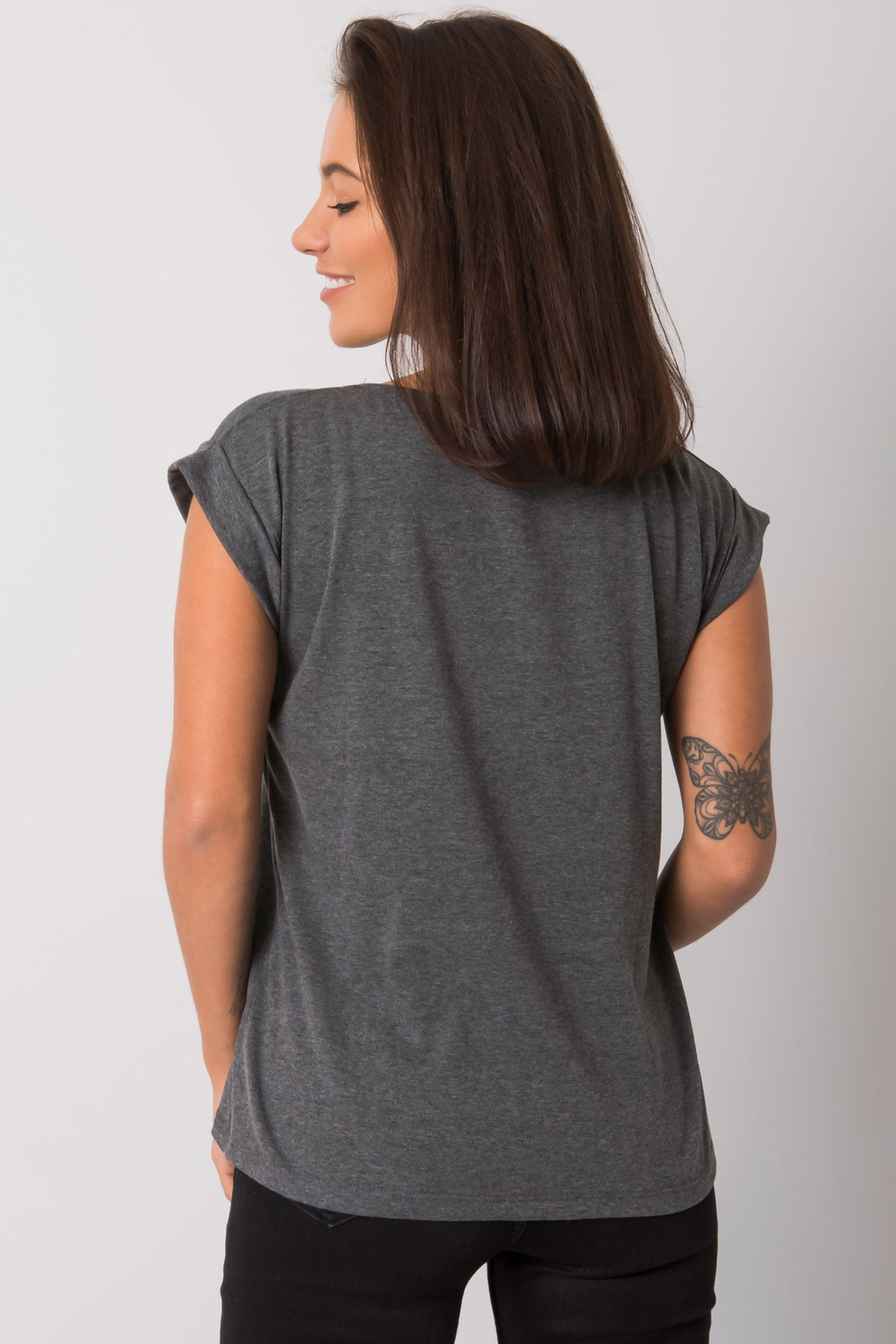 Tamsiai melanžiniai Revolution marškinėliai . Madingi marškinėliai labai dažnai užpildo mūsų stalčius iki kraštų. Nenuostabu, juk daug moterų kasdien jas dėvi tinkamai, todėl joms reikia įvairių raštų, spalvų ir stilių atsargų. Ypač rekomenduojame tokius bazinius marškinėlius, kurie yra universalūs, patogūs ir iš esmės tinka prie bet kokios spintos detalės. Jis pasižymi klasikine apvalia iškirpte, laisvesniu kirpimu ir smalsiai pasiraitojusiomis rankovėmis, kurios suteikia žavesio. Marškiniai pagaminti iš šiuolaikiško medžiagų mišinio, kuriame vyrauja gryna medvilnė, leidžianti odai kvėpuoti. Jį papildo nedidelis elastinio pluošto kiekis, kuris suteikia marškiniams švelnumo ir malonumą liesti. Šiuos paprastus marškinėlius verta derinti su džinsinėmis arba medžiaginėmis kelnėmis ir sijonais bei šortais iš mūsų internetinės kolekcijos.