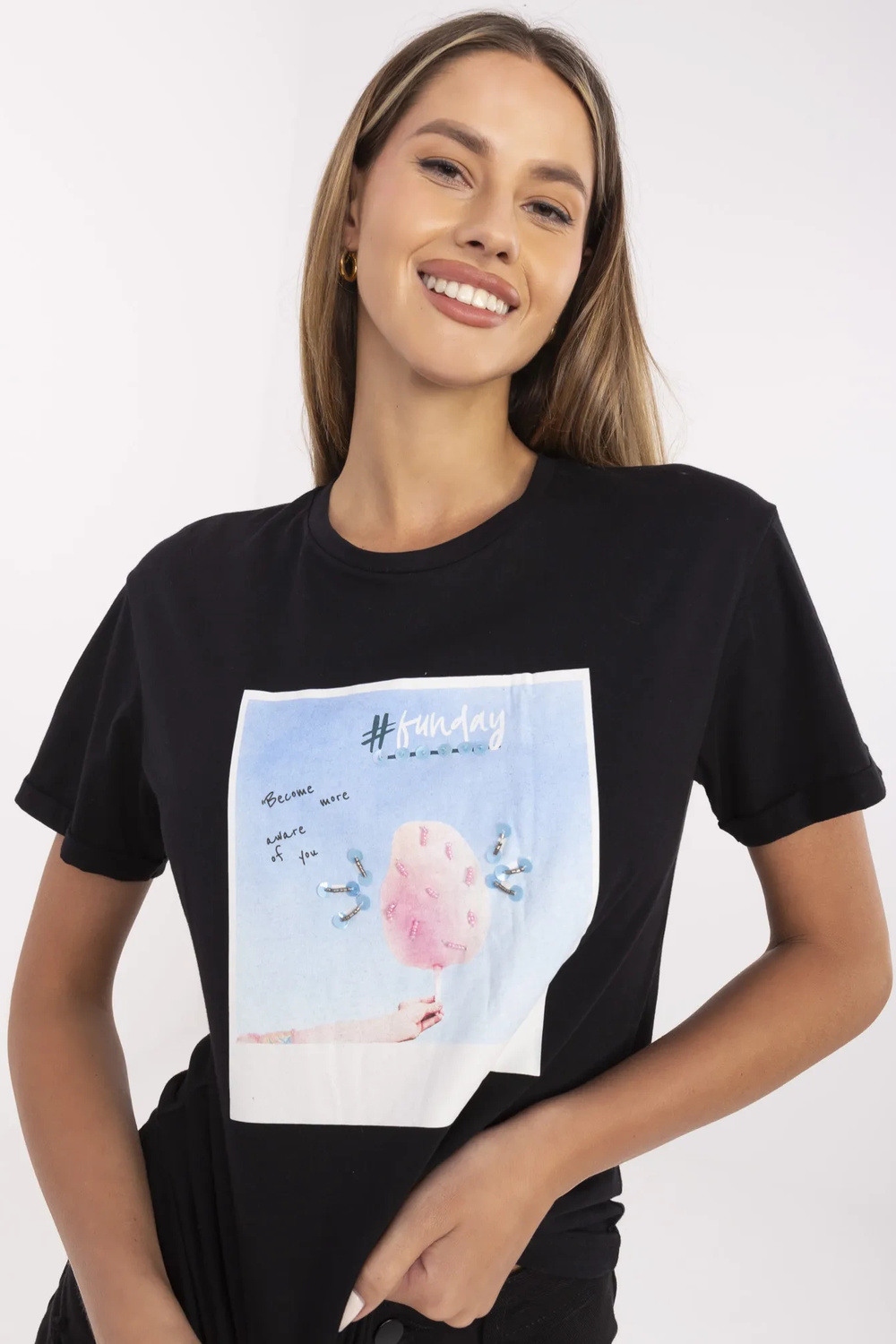 S dydžio marškinėlių matmenys, matuojami plokščiai : plotis pažastyje - 46 cm, bendras ilgis - 59 cm