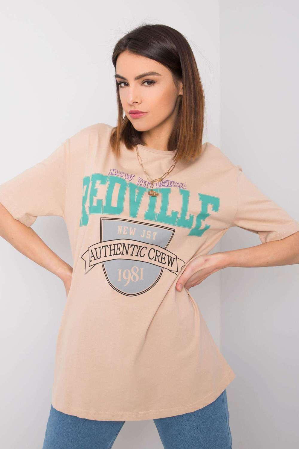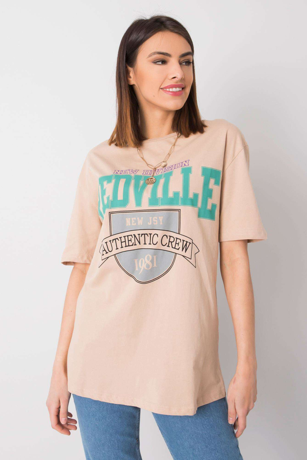 Beigetiniai marškinėliai moterims su Margaret RUE PARIS raštais .